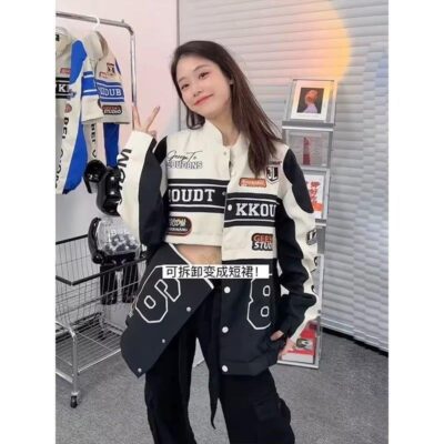 Áo khoác bóng chày có thể tháo rời theo phong cách châu Âu và châu Mỹ mùa xuân phong cách cổ điển áo khoác đua mô tô phóng khoáng hợp thời trang
