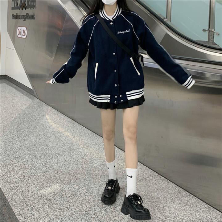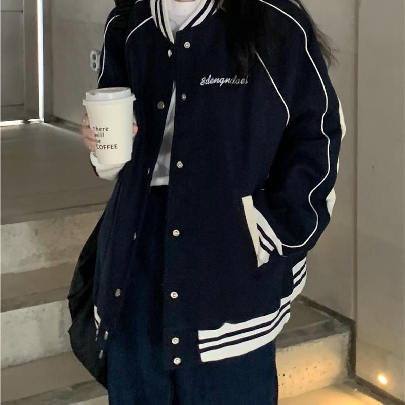 Áo khoác bóng chày nữ mùa thu xuân thu 2023 thiết kế mới cảm giác thích hợp áo khoác rộng phù hợp với áo khoác dài tay ins