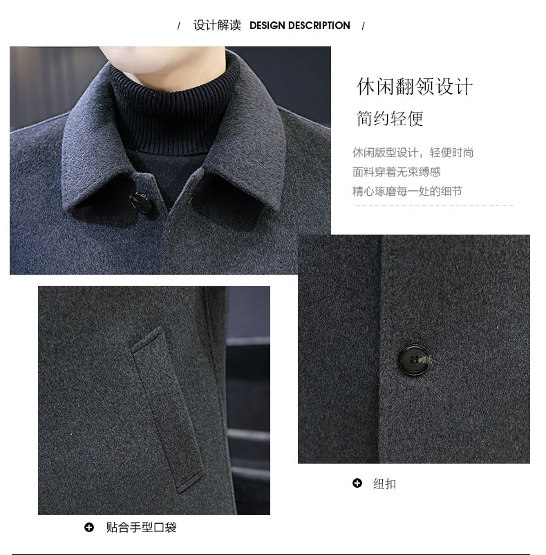 Áo khoác cashmere 2 mặt nam dày vừa mùa đông mới thanh niên Anh áo khoác len len thường