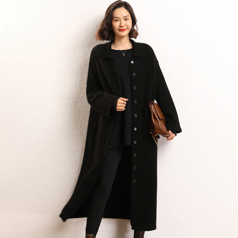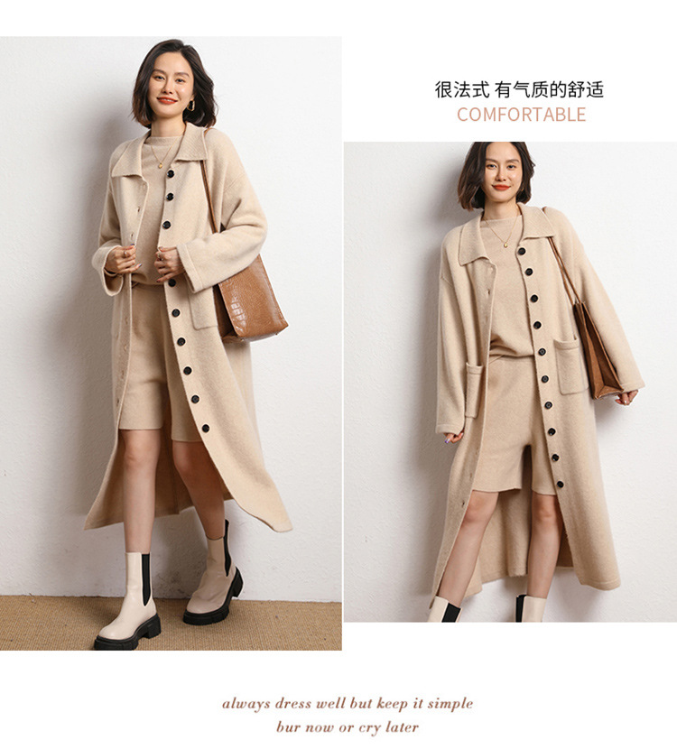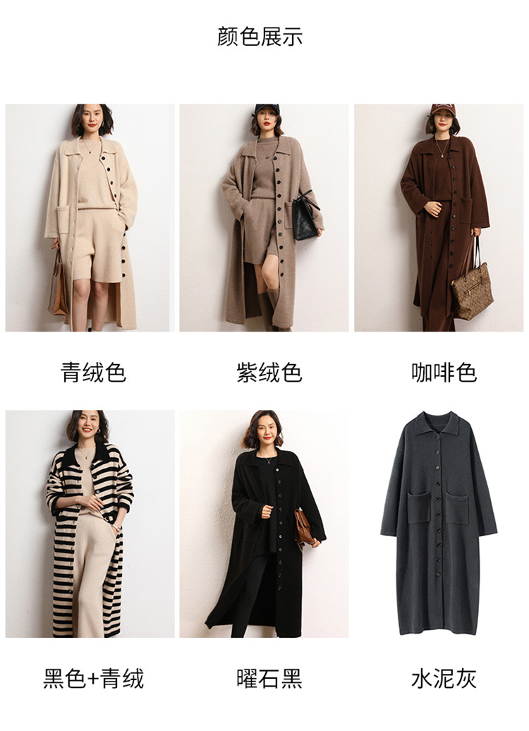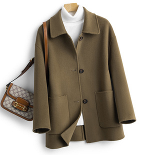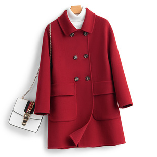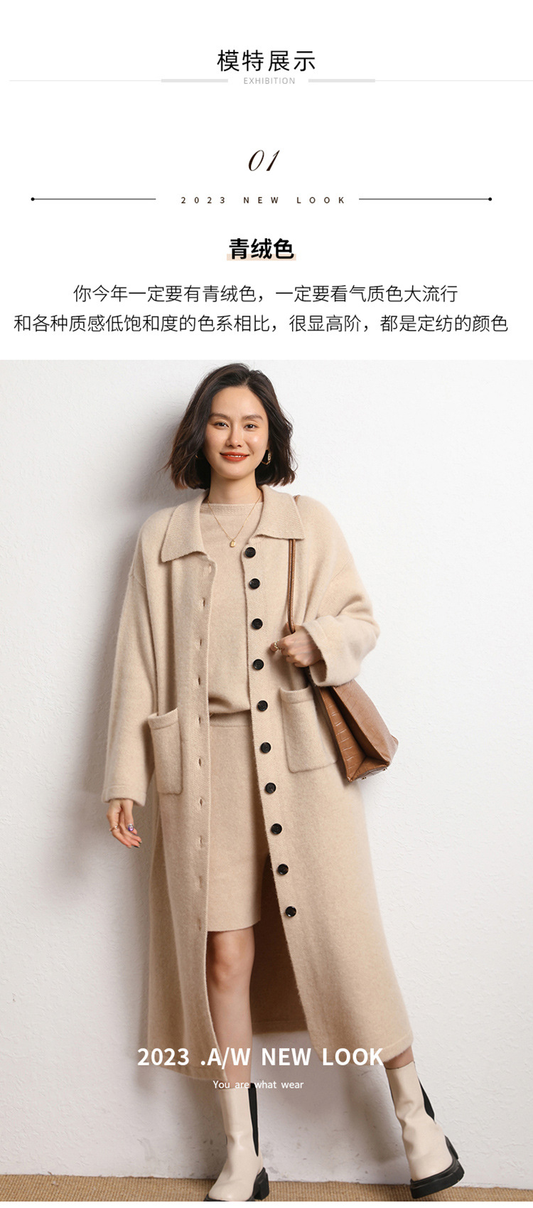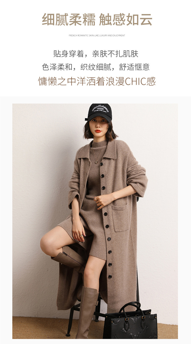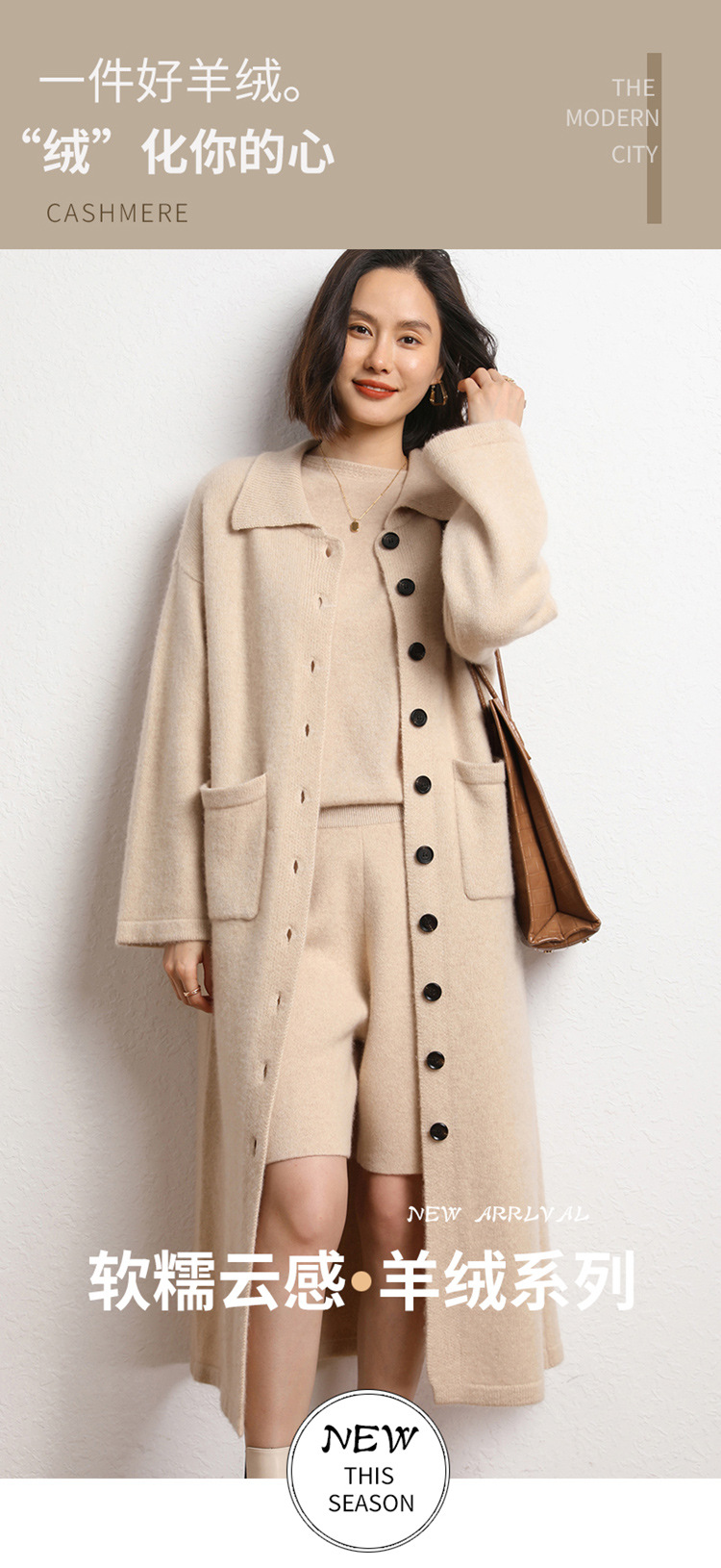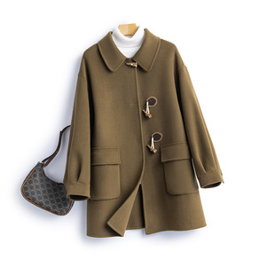 Áo khoác cashmere cổ búp bê mùa thu và mùa đông mới của phụ nữ áo len dài vừa phải dáng rộng giảm béo nhẹ nhàng phong cách áo khoác đơn hàng ngực