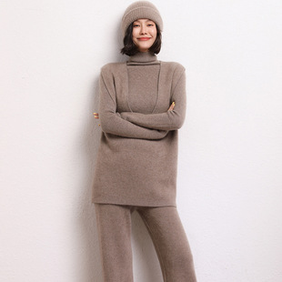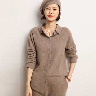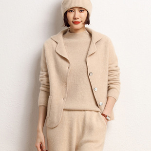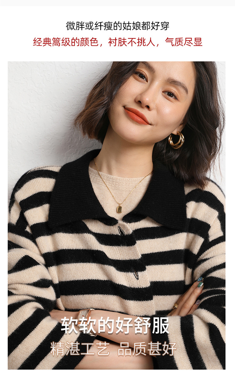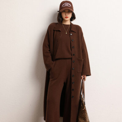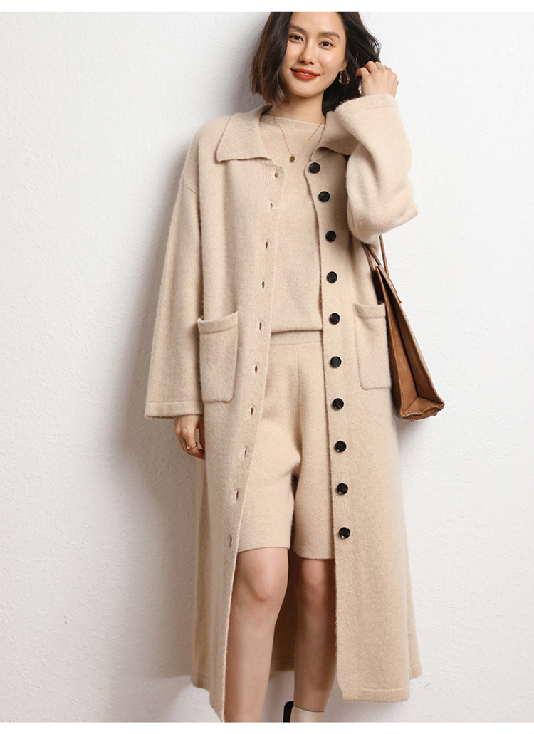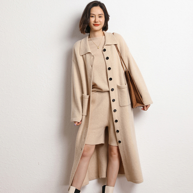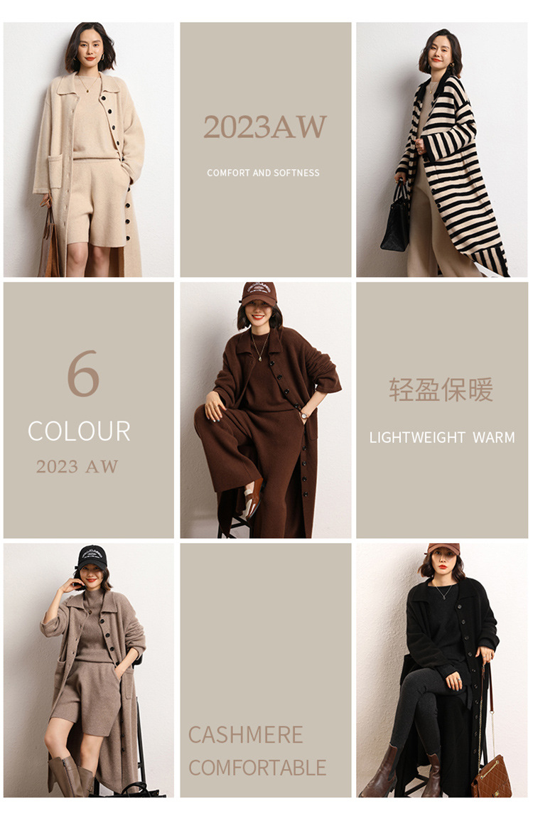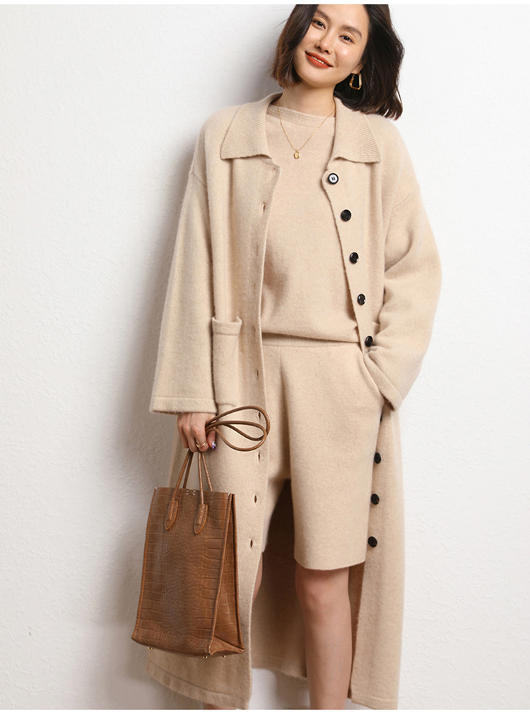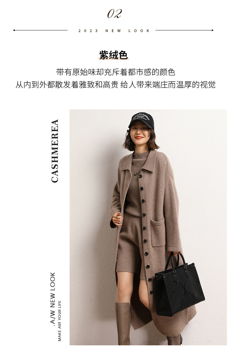 Áo khoác cashmere cổ búp bê mùa thu và mùa đông mới của phụ nữ áo len dài vừa phải dáng rộng giảm béo nhẹ nhàng phong cách áo khoác đơn hàng ngực