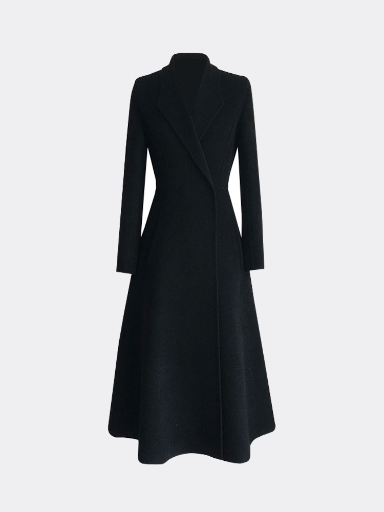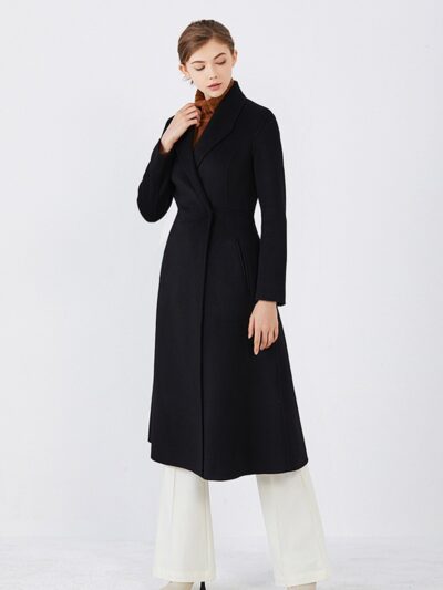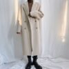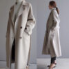 Áo khoác cashmere hai mặt dáng dài co thắt eo cho nữ mùa thu đông kiểu dáng ôm vừa qua đầu gối mới