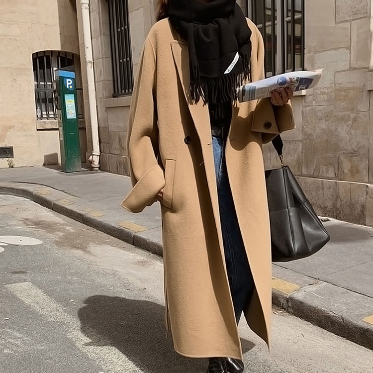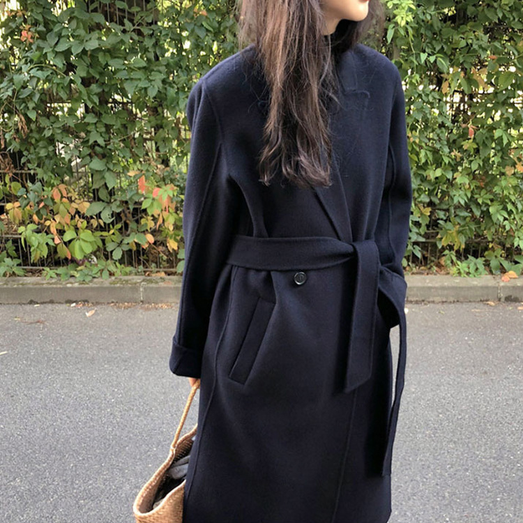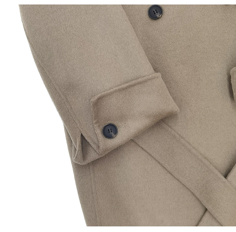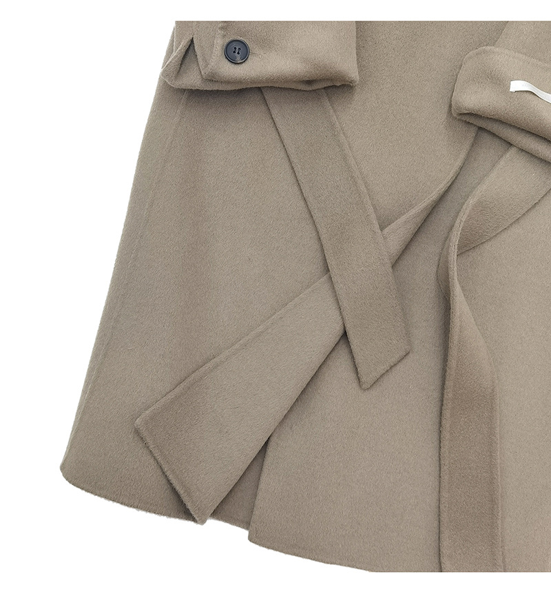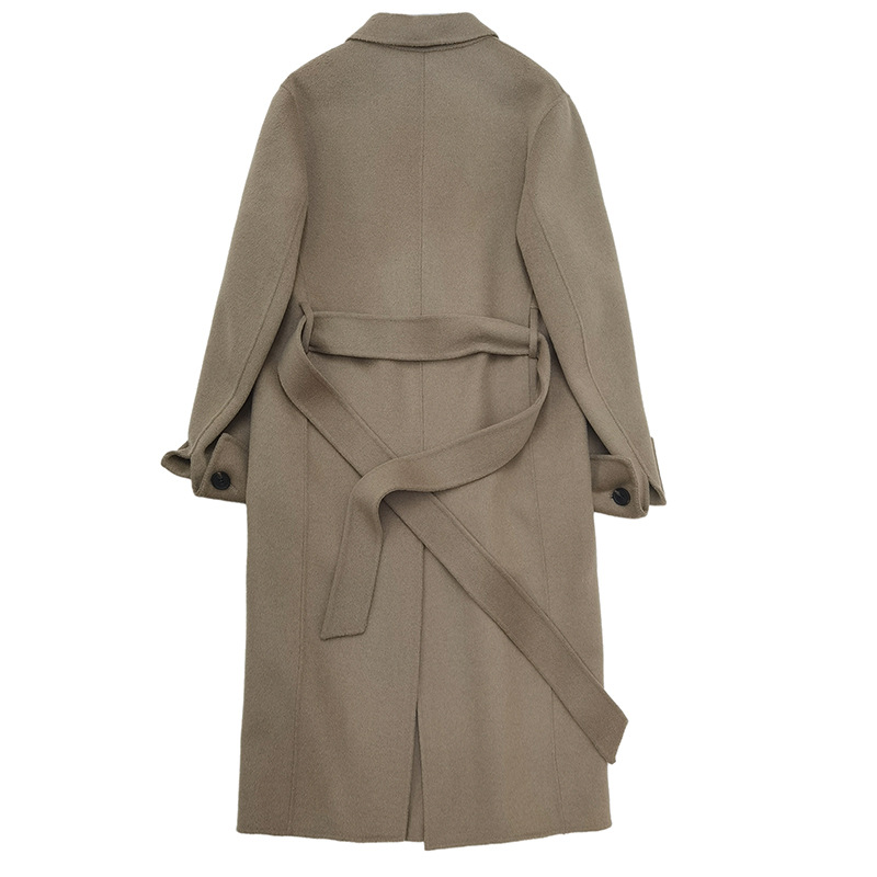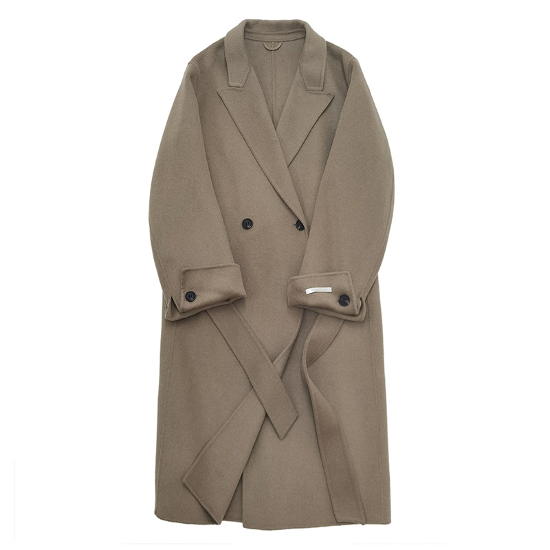 Áo khoác cashmere hai mặt màu ca cao Dongdaemun Hàn Quốc thắt lưng dài vừa phải áo khoác gió nylon hai mặt may thủ công