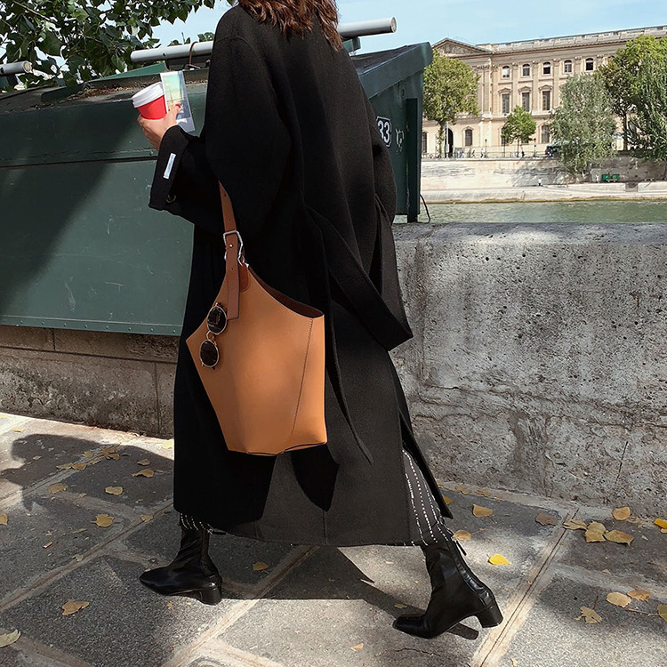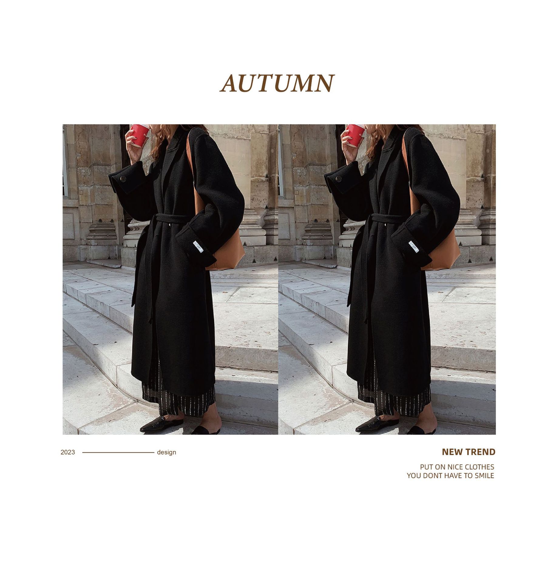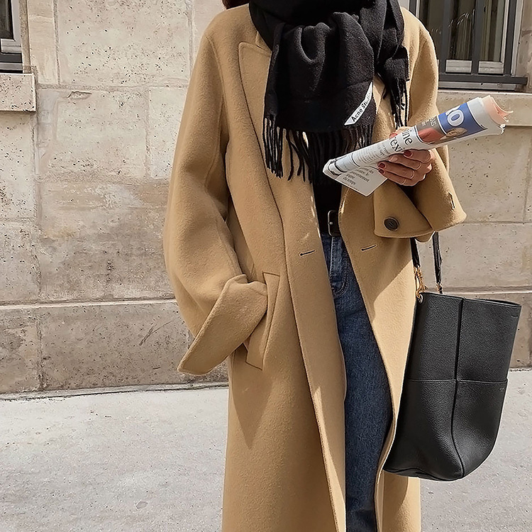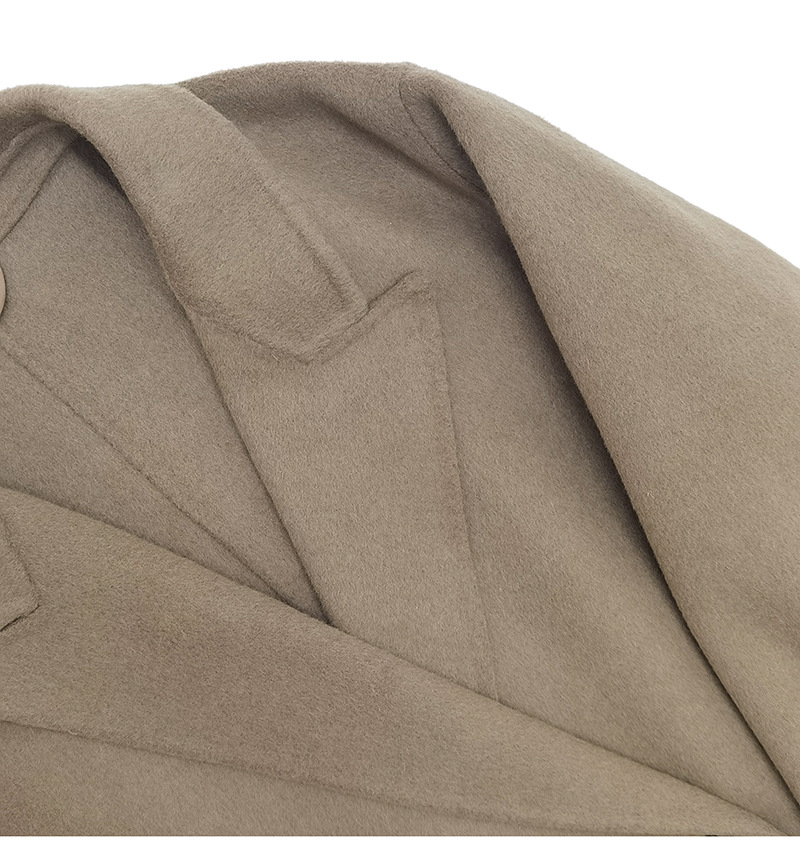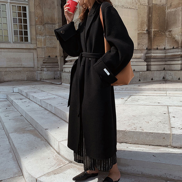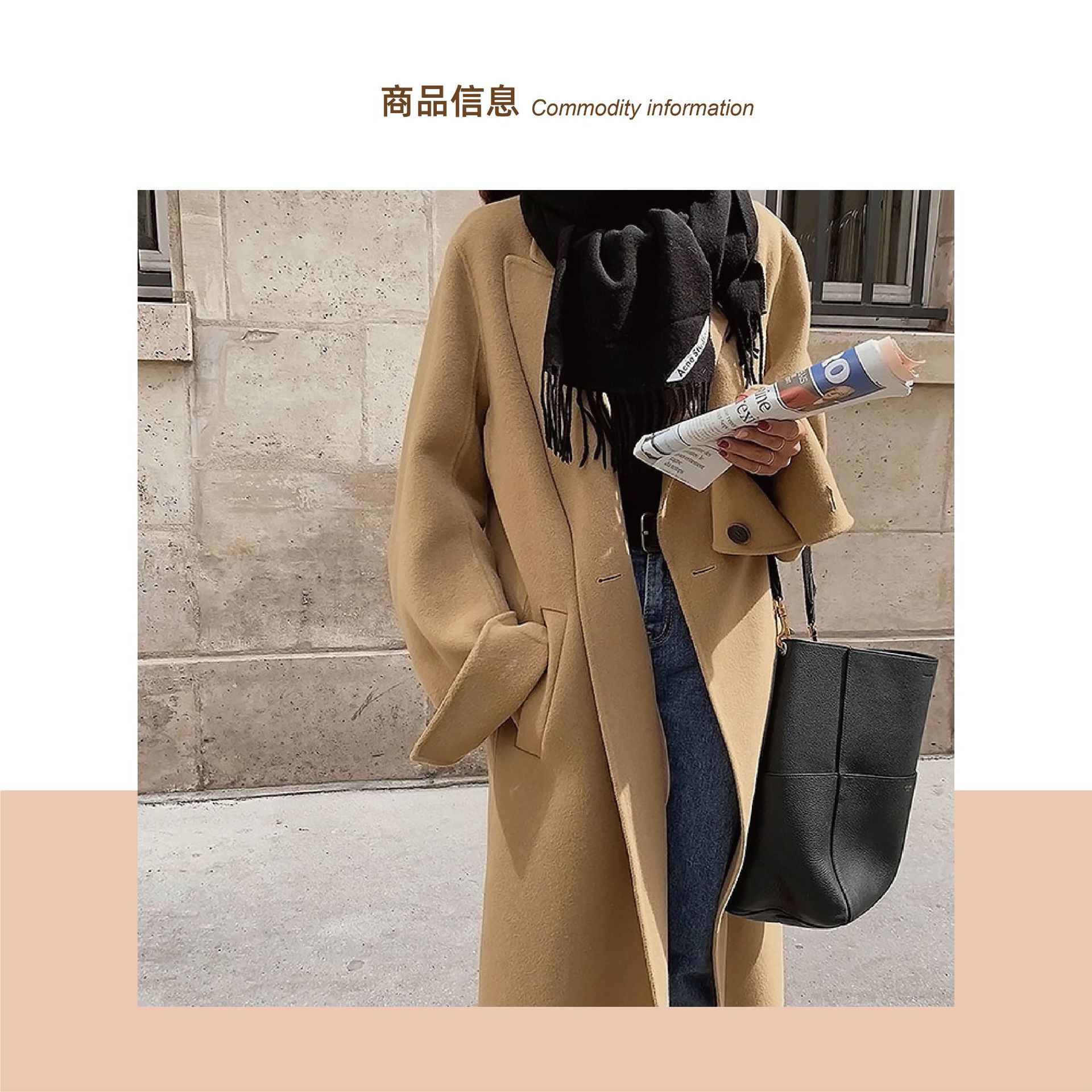 Áo khoác cashmere hai mặt màu ca cao Dongdaemun Hàn Quốc thắt lưng dài vừa phải áo khoác gió nylon hai mặt may thủ công