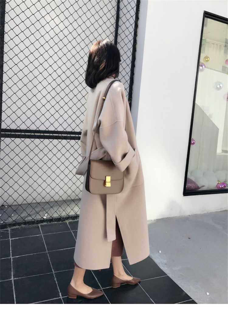 Áo khoác cashmere nữ dài vừa phải mùa thu đông 2023 phiên bản Hàn Quốc mới phổ biến áo khoác len nữ phong cách đại học