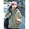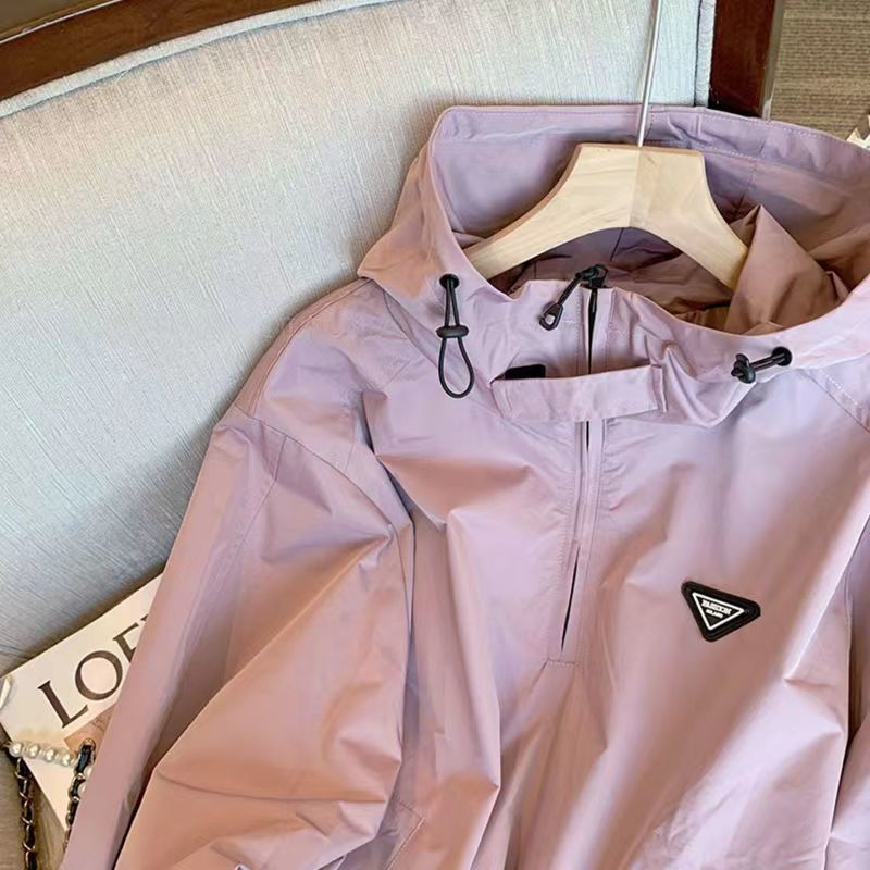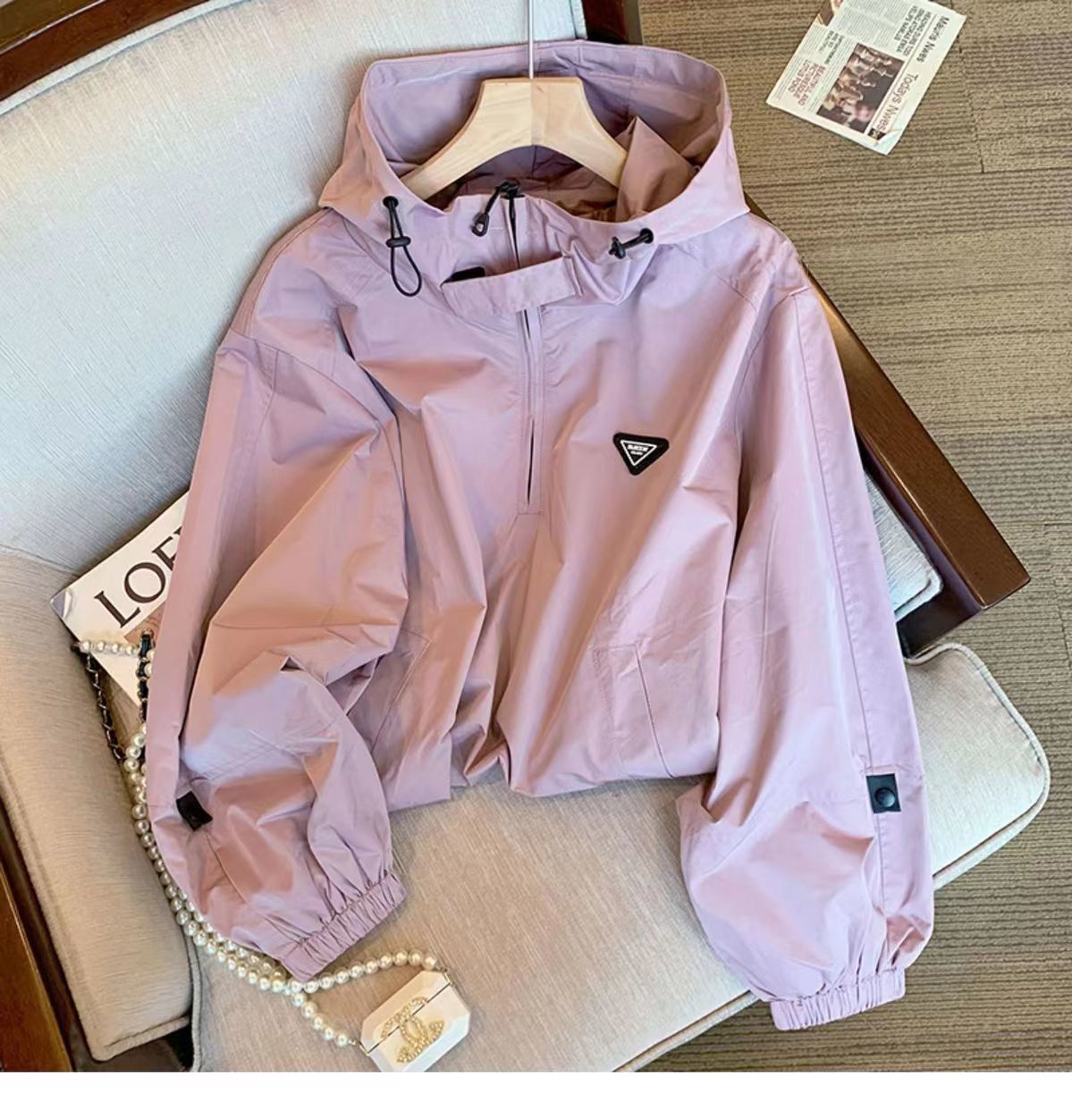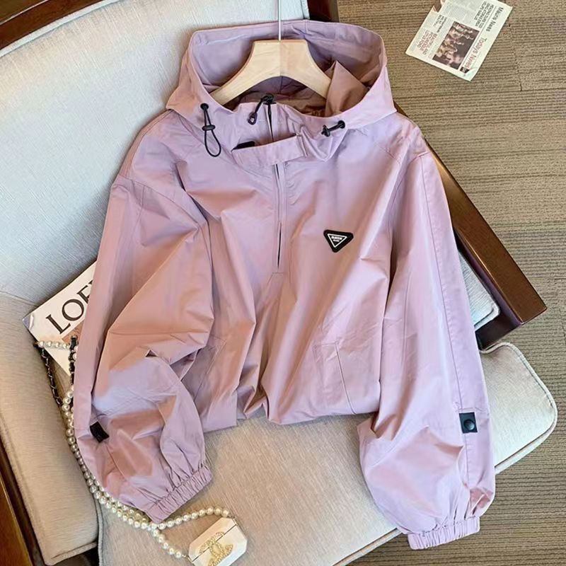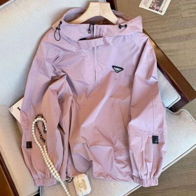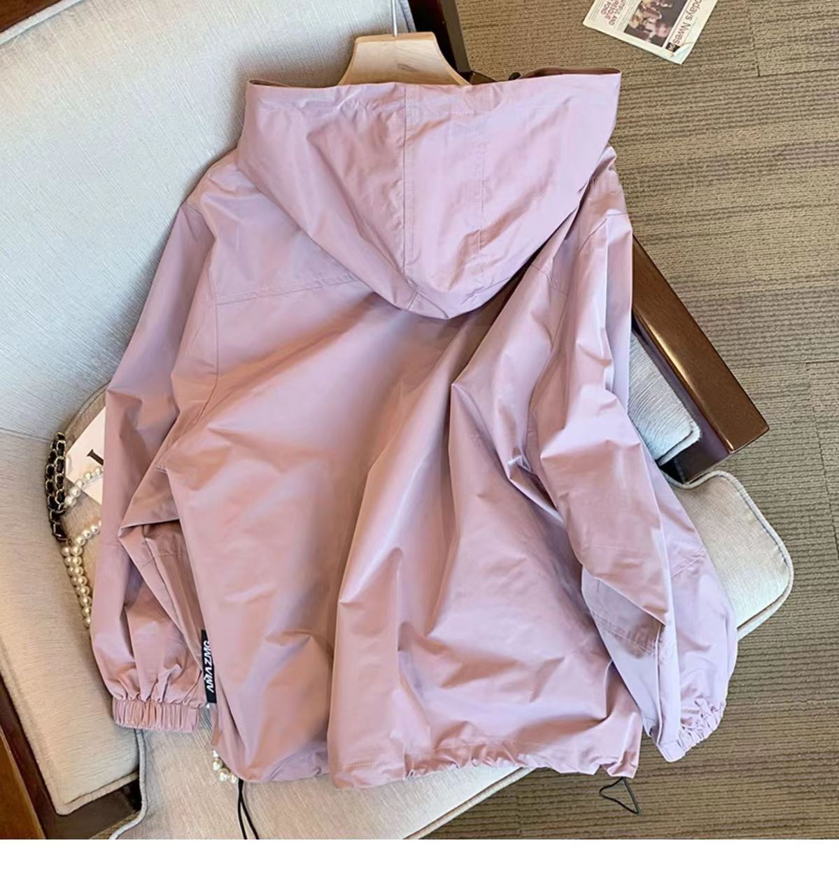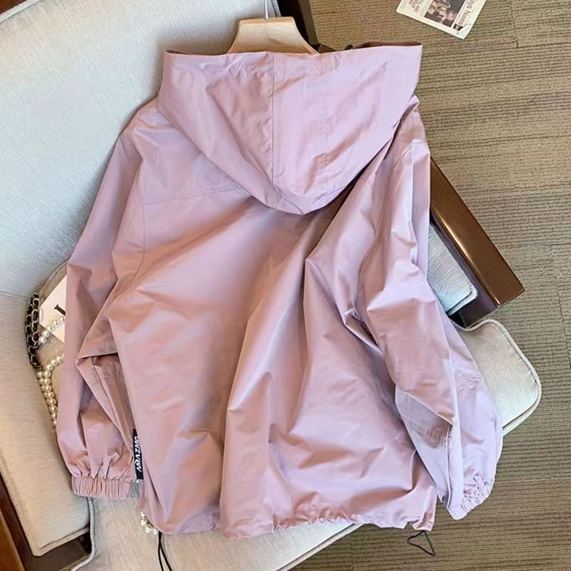 Áo khoác có mũ trùm đầu màu hồng tím áo khoác nữ chống gió mùa thu khí chất giản dị mới hợp xu hướng áo khoác ins