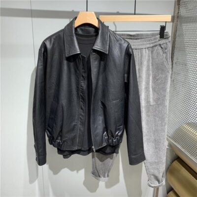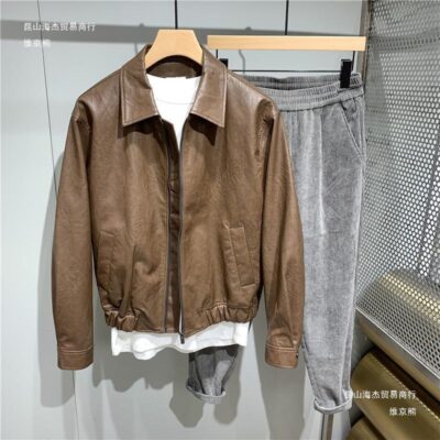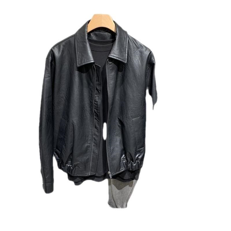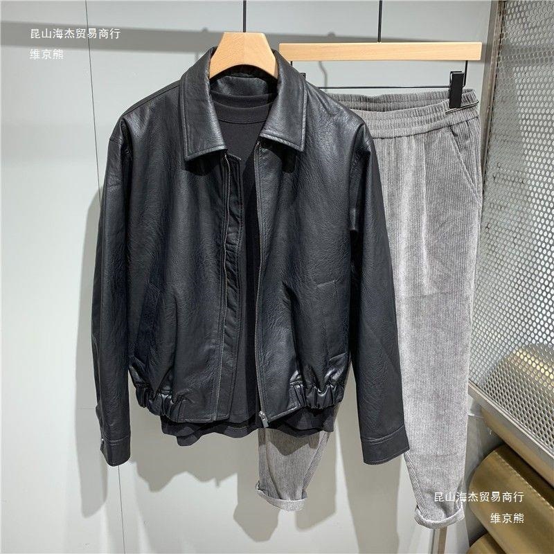 Áo khoác da cổ ve áo nam ngắn Áo khoác da nam dáng rộng phong cách Hàn Quốc Xu hướng thời trang nam Bộ quần áo đi xe máy cặp đôi giản dị