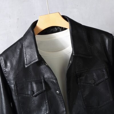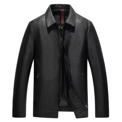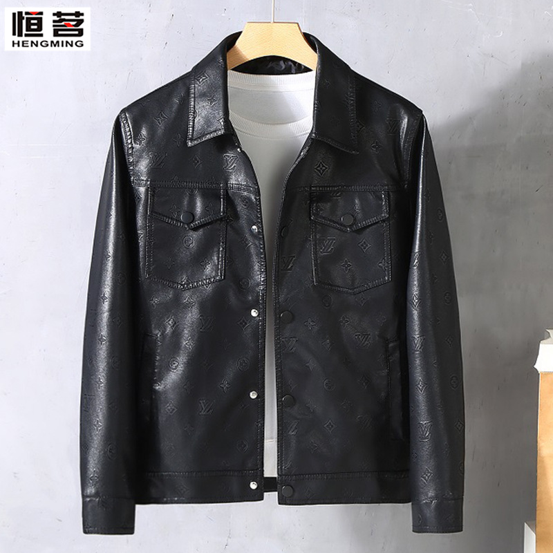 Áo khoác da nam mùa xuân và mùa thu 2023 xu hướng áo khoác da nam trung niên có ve áo áo khoác da thời trang người đàn ông mô tô