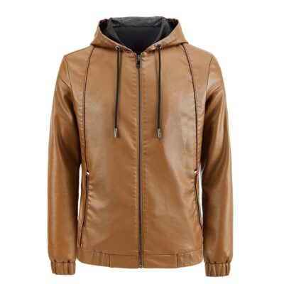 Áo khoác da nam Nhà sản xuất bán buôn Xuất khẩu Amazon Leather Men’s Trùm đầu Slim Phong cách Hàn Quốc Xe máy Áo khoác giản dị