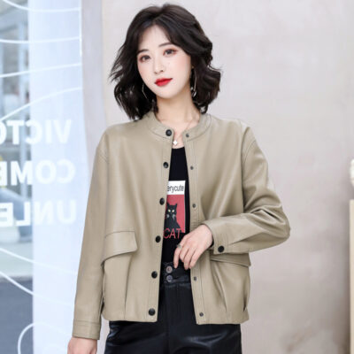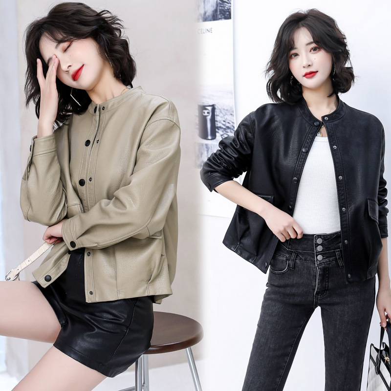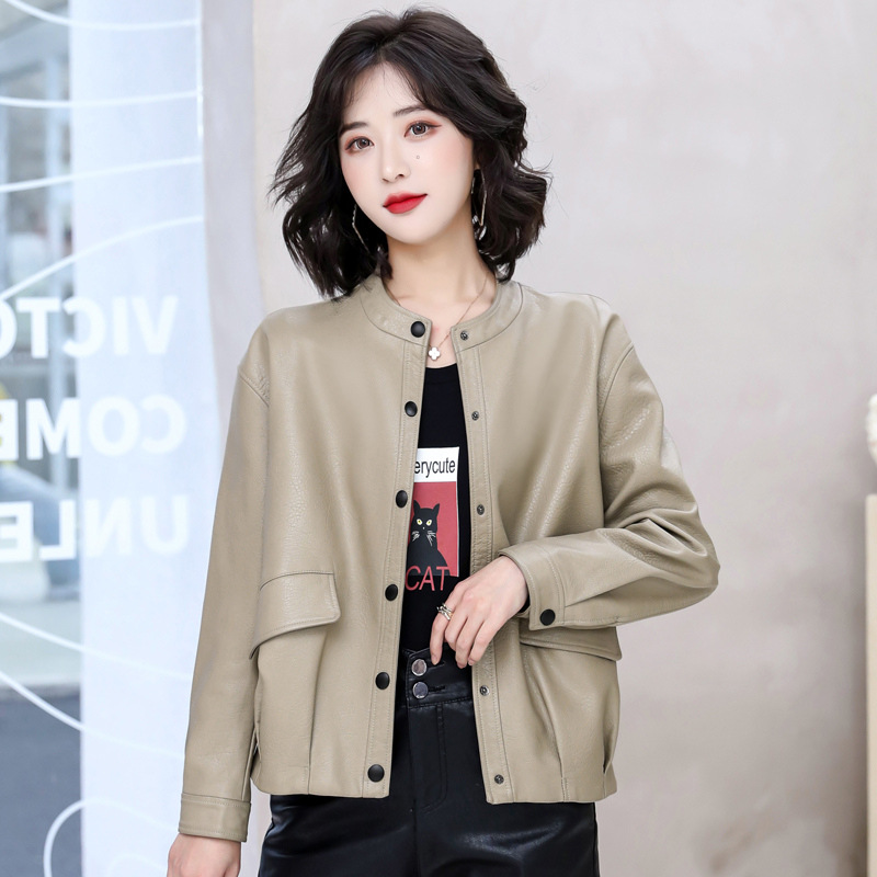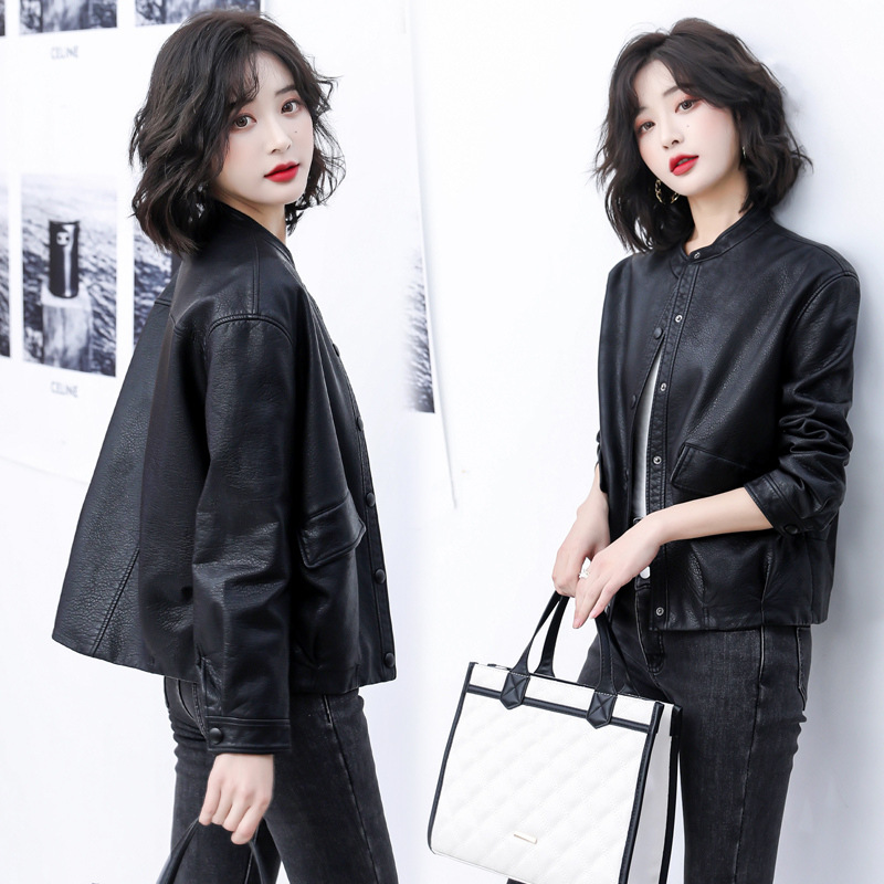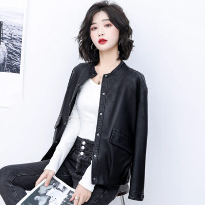 Áo khoác da ngắn cỡ lớn cho nữ haining dáng rộng áo khoác da cừu phù hợp tất cả áo khoác da mô tô mùa xuân và mùa thu 2023 phong cách hàn quốc hợp thời trang