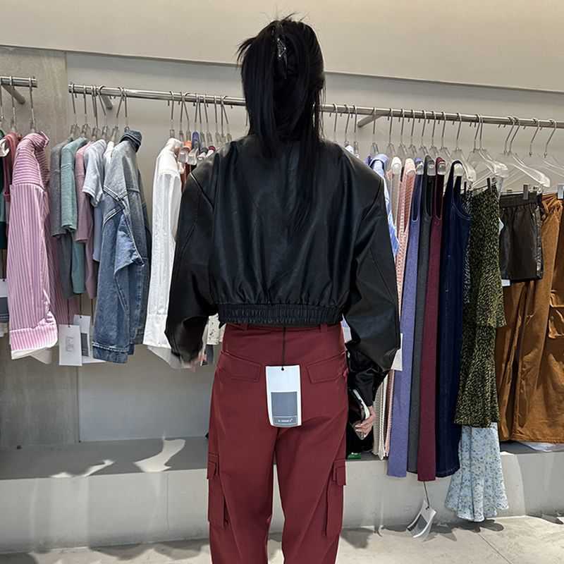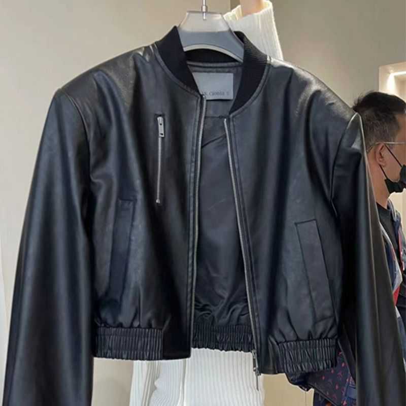 Áo khoác da ngắn nữ mùa xuân và mùa thu 2023 phong cách Hàn Quốc phù hợp với áo khoác rộng thường phục đồng phục bóng chày áo khoác da không nứt thời trang nữ