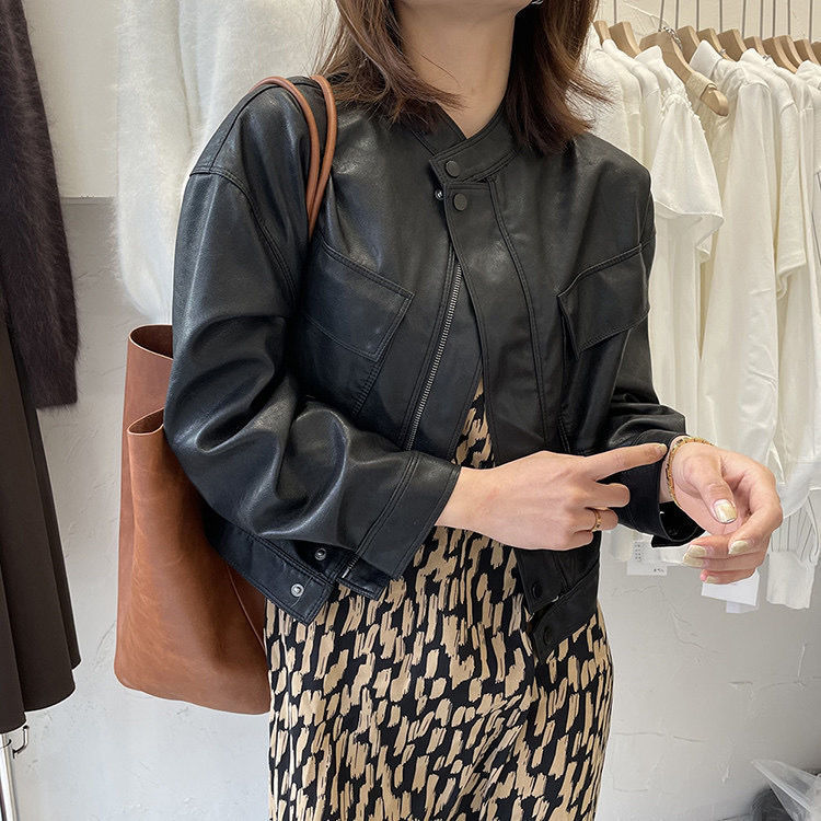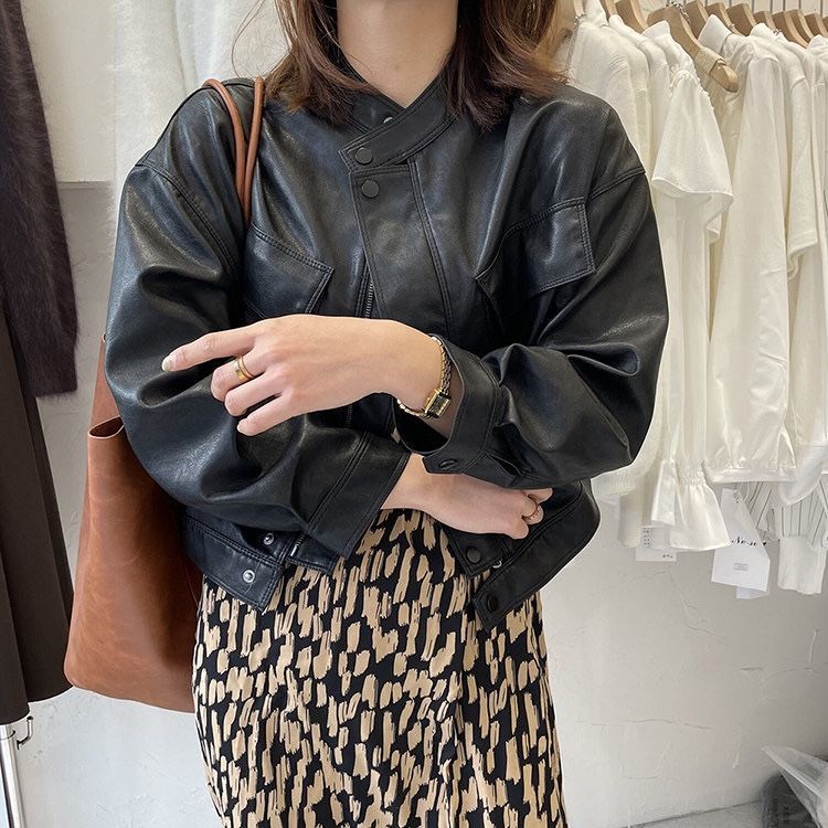 Áo khoác da nữ áo khoác da nhỏ ngắn mùa xuân và mùa thu phiên bản Hàn Quốc mỏng chiên xe arcade phù hợp với tất cả các trận đấu áo khoác da học sinh