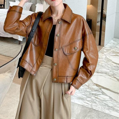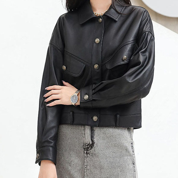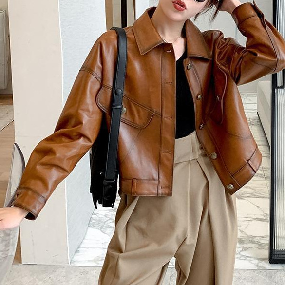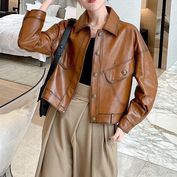 Áo khoác da nữ mùa thu đông mới da cừu phần ngắn Plus nhung dày hàng đầu áo khoác thường