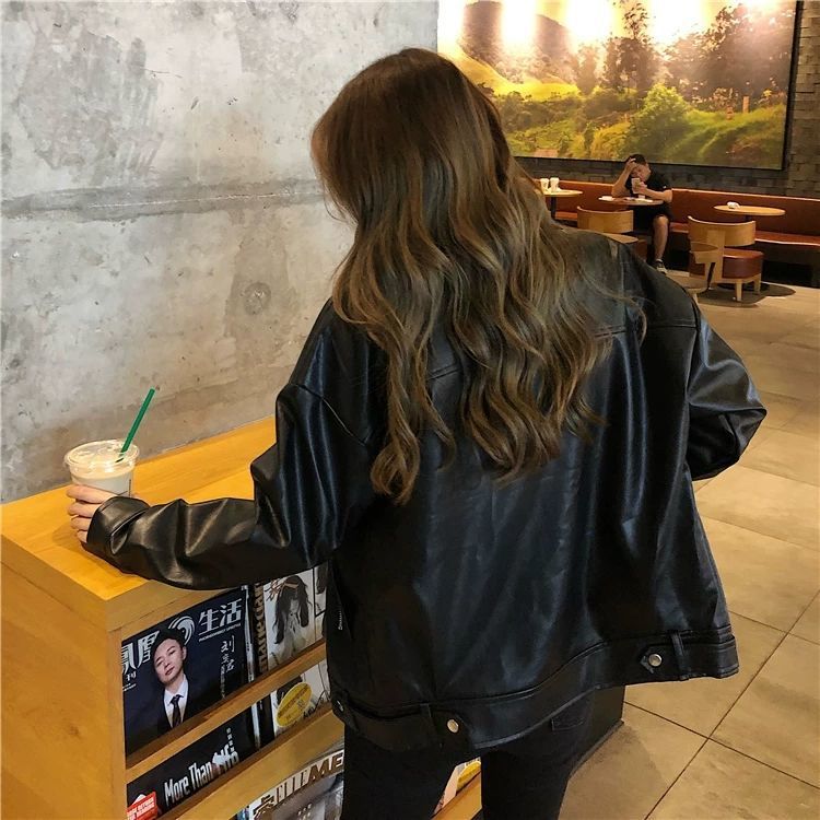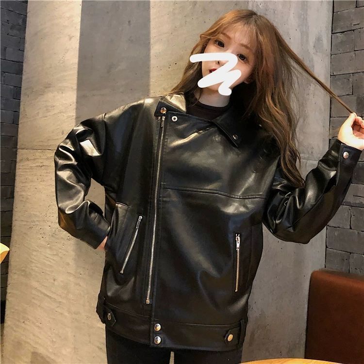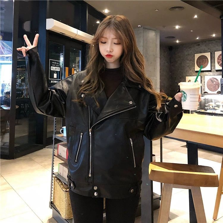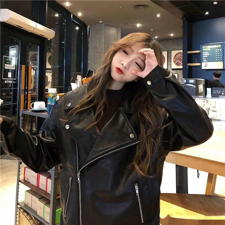 Áo khoác da nữ mùa xuân và mùa thu 2023 phiên bản Hàn Quốc mới, dáng rộng, phù hợp với mọi lứa tuổi, áo khoác xe máy PU đường phố ins triều