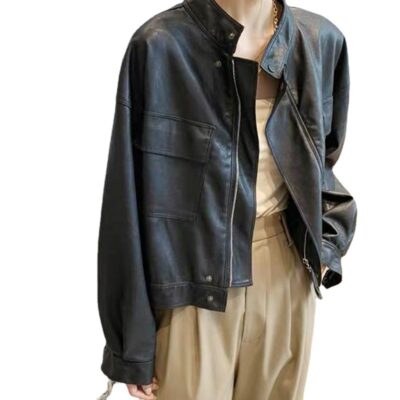 Áo khoác da nữ mùa xuân và mùa thu 2023 phiên bản Hàn Quốc ngắn phù hợp với xe máy áo khoác da cổ điển áo khoác cỡ lớn giảm béo