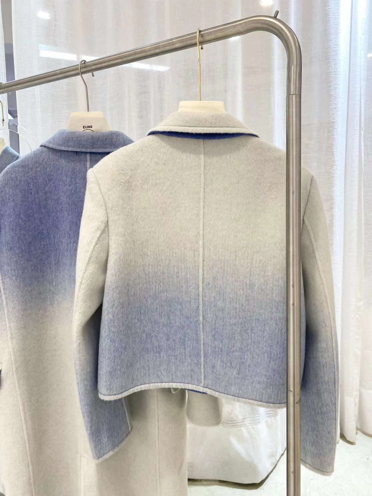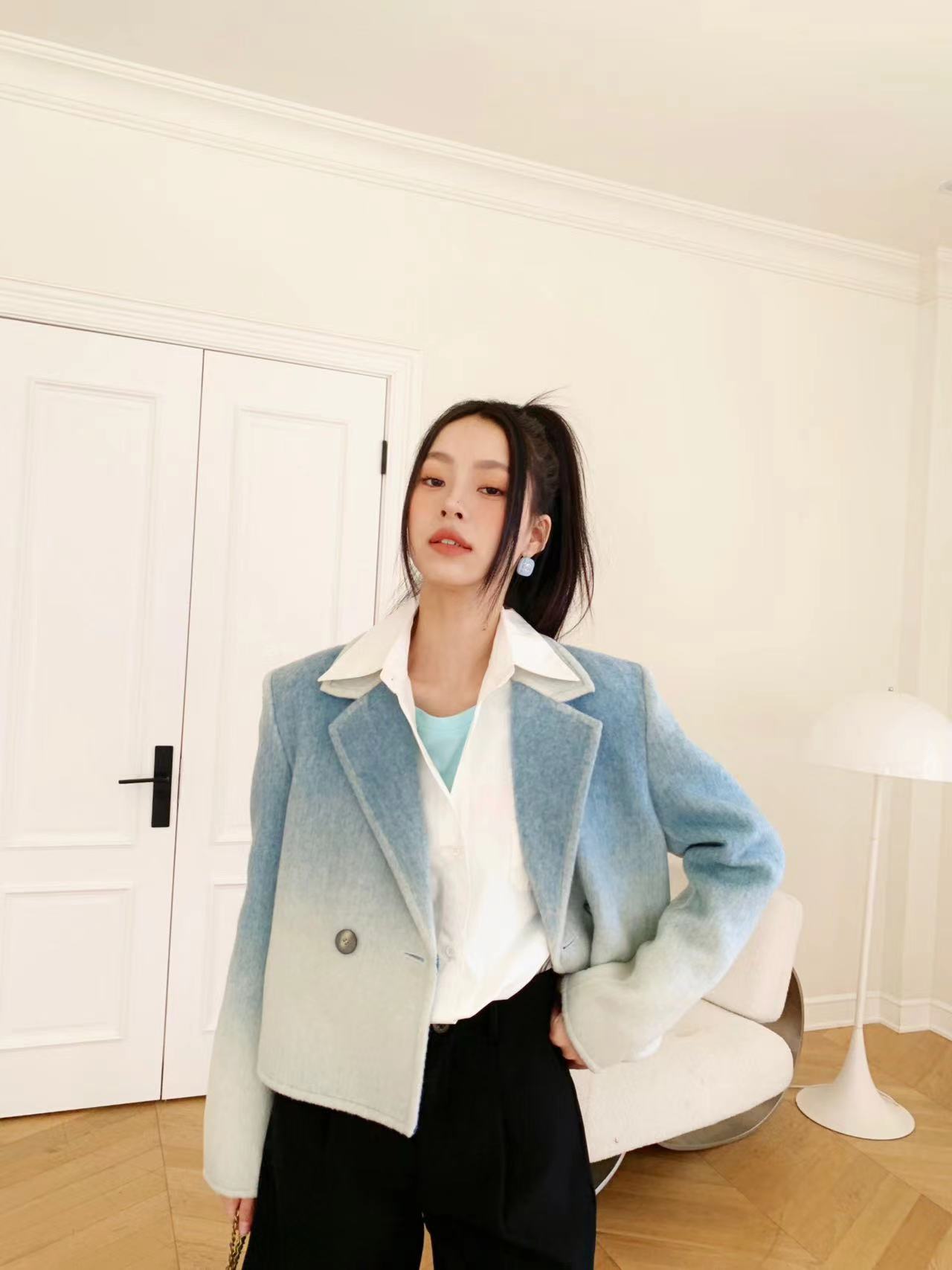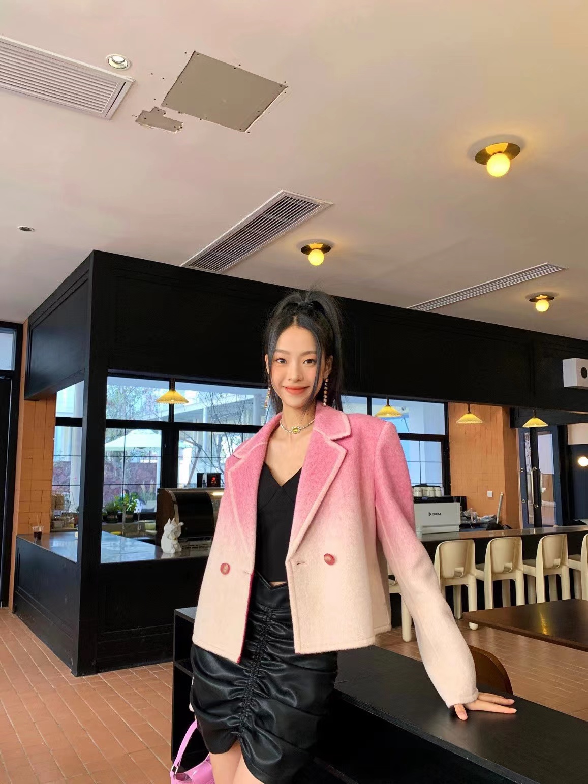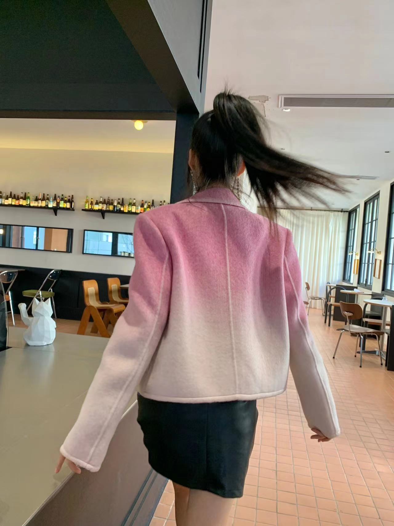 Áo khoác dạ siêu ngắn phối màu gradient Khí chất Hàn Quốc Áo khoác cashmere hai mặt nữ thu đông 2023 phong cách mới 23A001