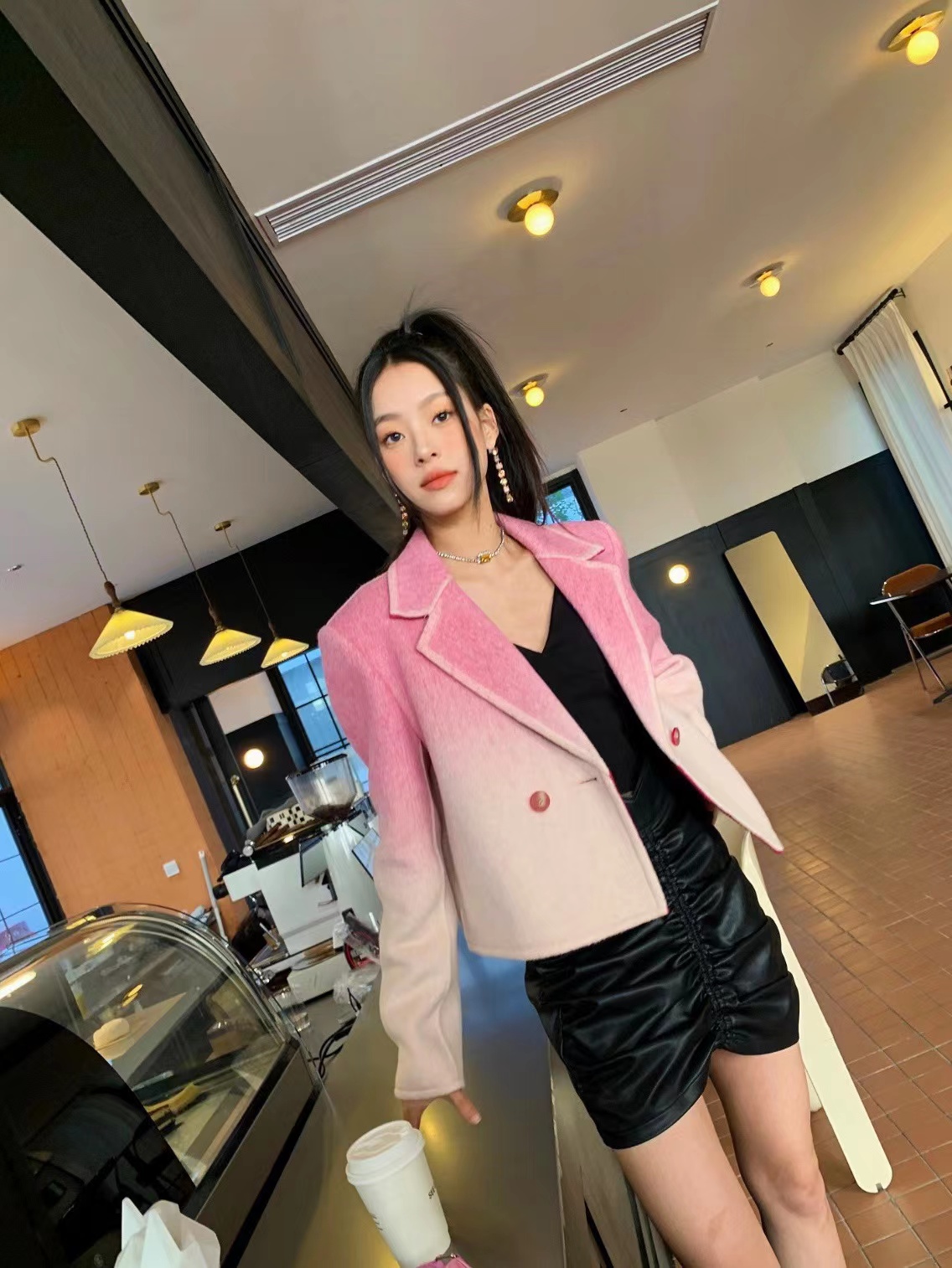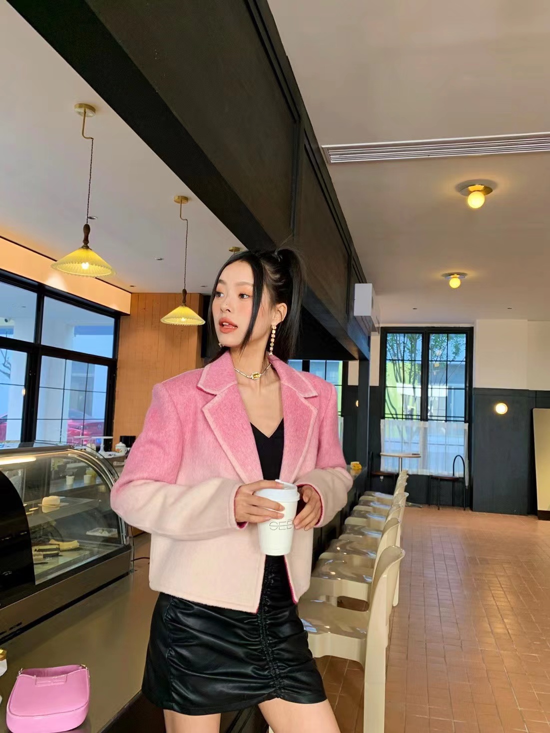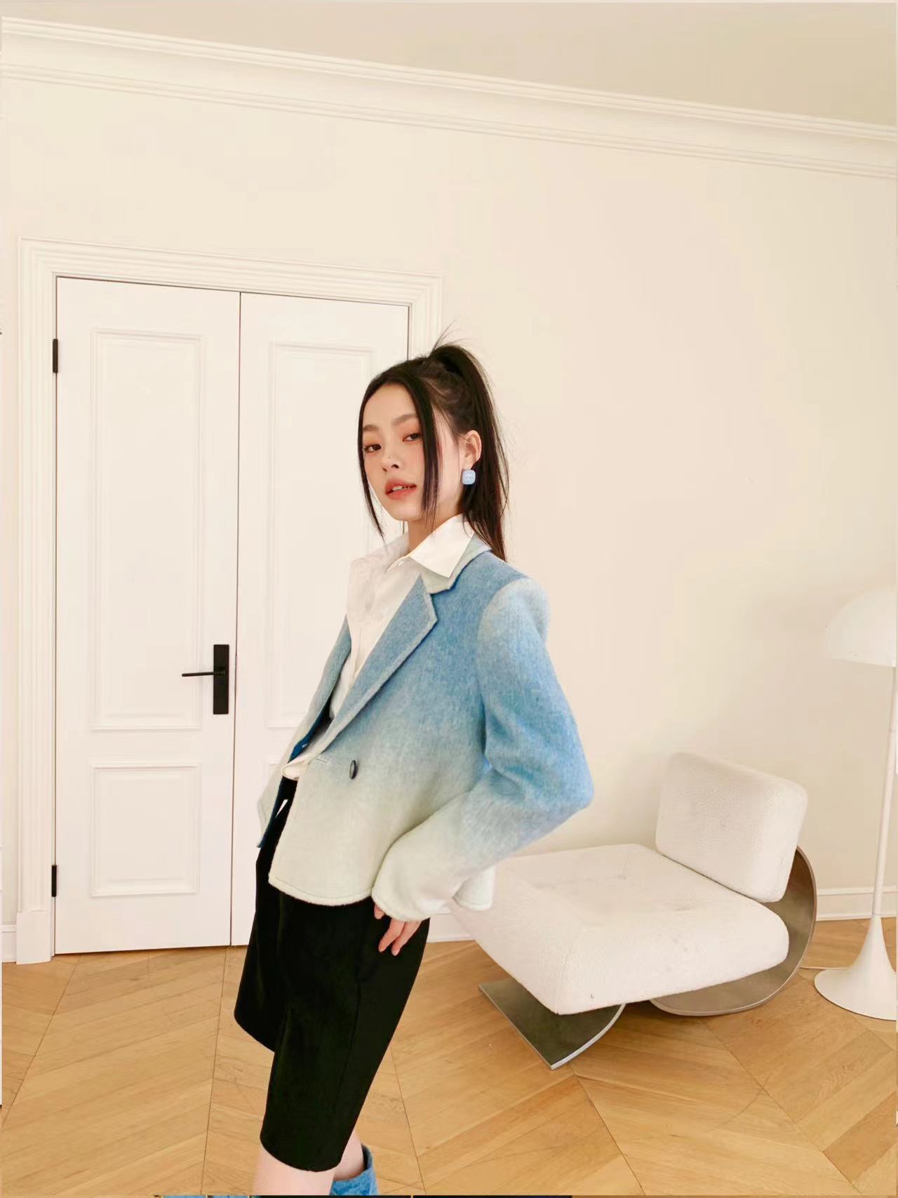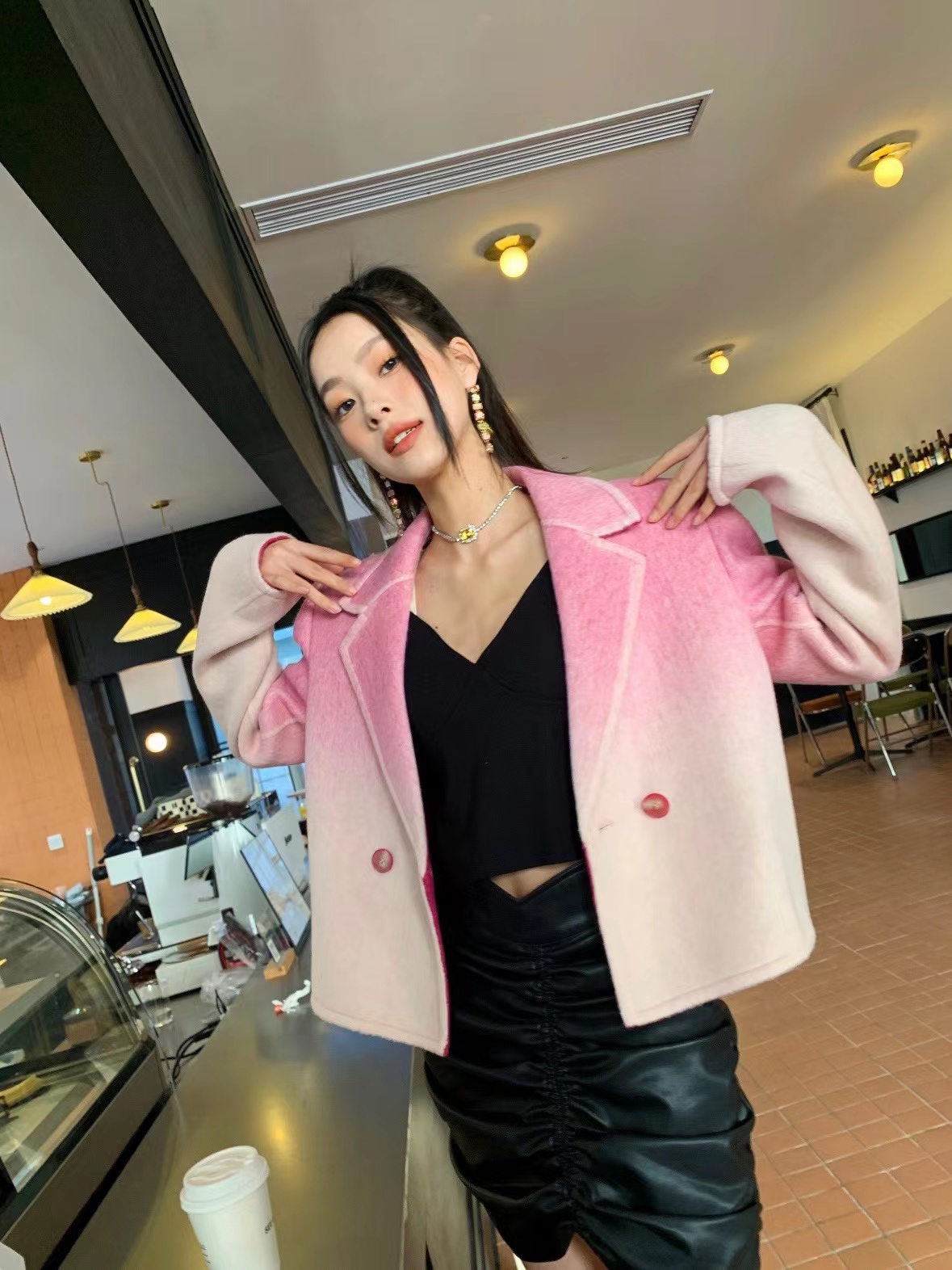 Áo khoác dạ siêu ngắn phối màu gradient Khí chất Hàn Quốc Áo khoác cashmere hai mặt nữ thu đông 2023 phong cách mới 23A001