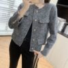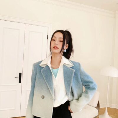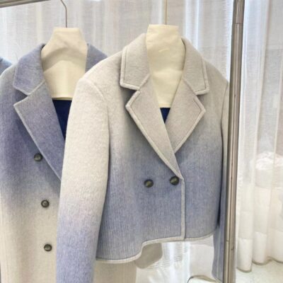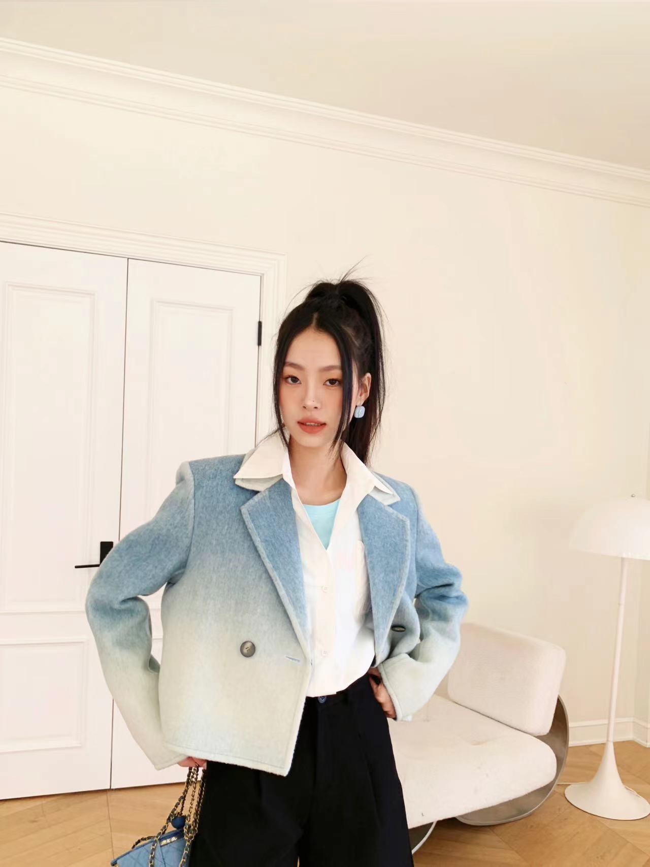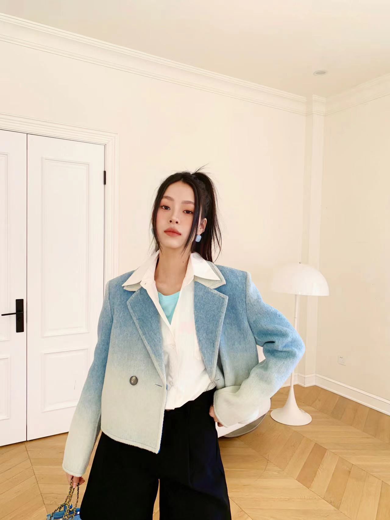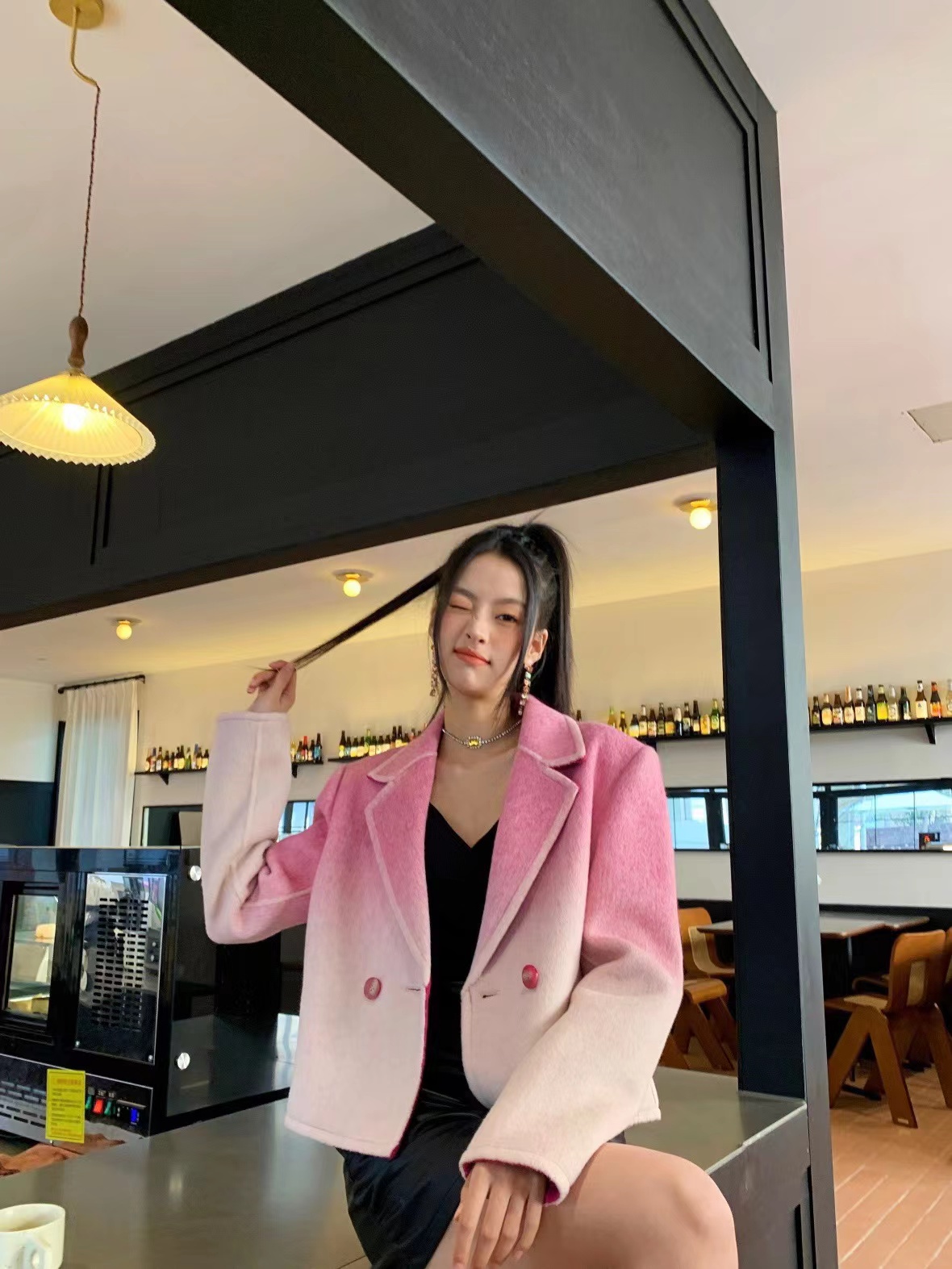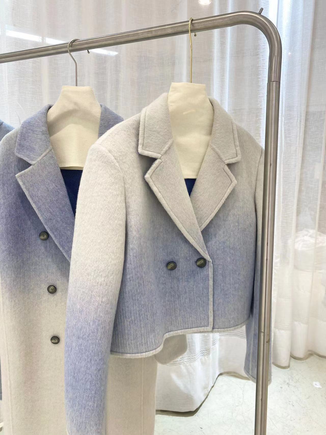 Áo khoác dạ siêu ngắn phối màu gradient Khí chất Hàn Quốc Áo khoác cashmere hai mặt nữ thu đông 2023 phong cách mới 23A001