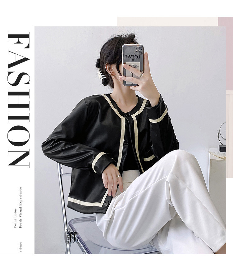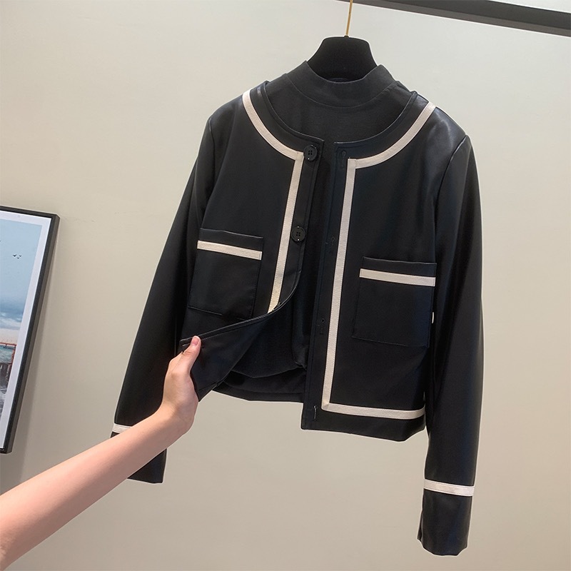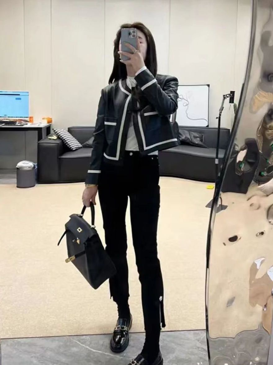 Áo khoác da Xiaoxiangfeng nữ kiểu dáng ngắn mùa xuân và mùa thu 2023 mới của Nhật Bản và Hàn Quốc áo khoác da mềm hợp thời trang một giọt