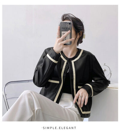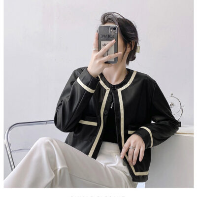 Áo khoác da Xiaoxiangfeng nữ kiểu dáng ngắn mùa xuân và mùa thu 2023 mới của Nhật Bản và Hàn Quốc áo khoác da mềm hợp thời trang một giọt