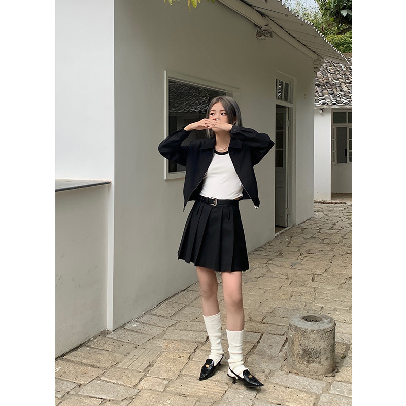 Áo khoác dây kéo ve áo Domi D2633 nữ mùa xuân mới 2023 phong cách Hàn Quốc thời trang phù hợp với áo khoác dài tay giản dị