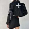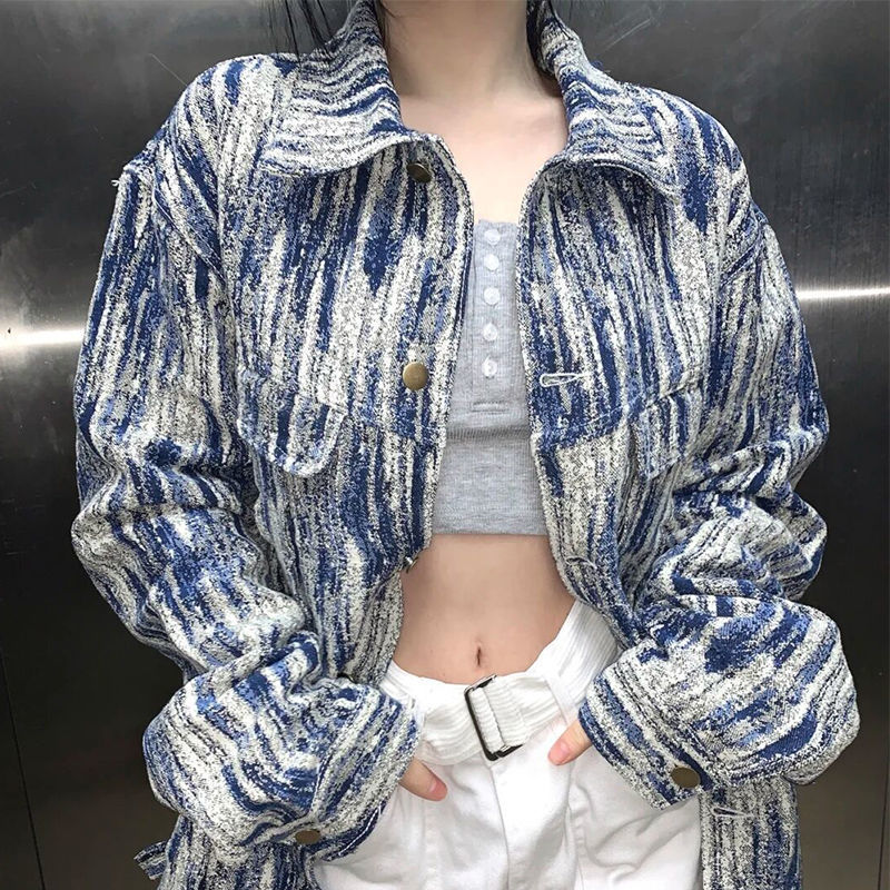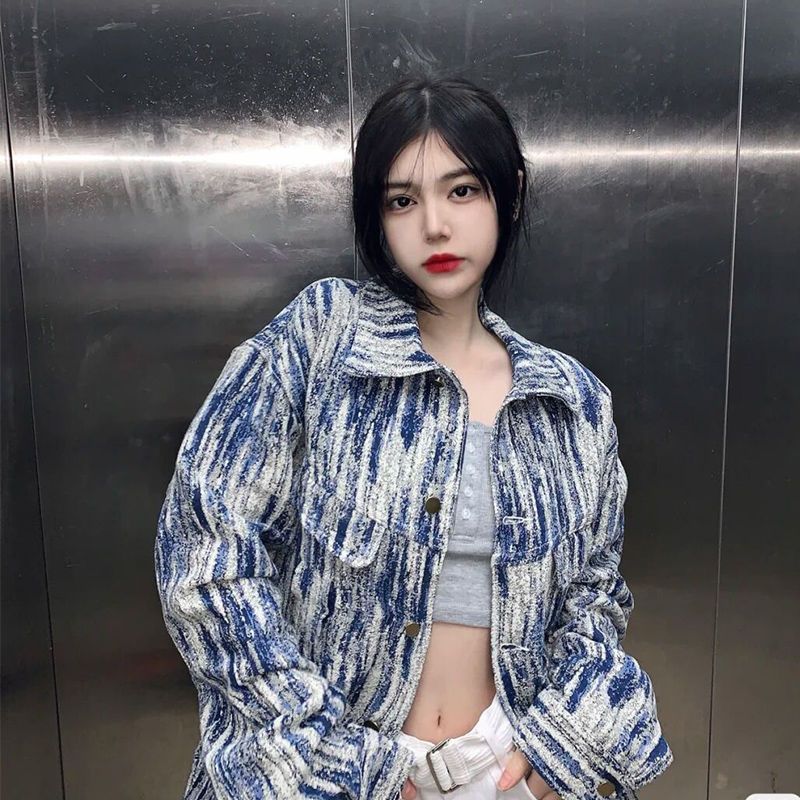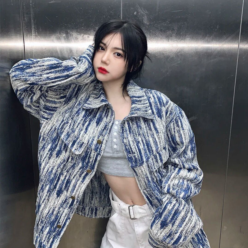 Áo khoác denim buộc dây nữ mùa xuân 2023 phiên bản Hàn Quốc dáng rộng phong cách retro chiên đường phố Harajuku dụng cụ áo khoác hàng đầu