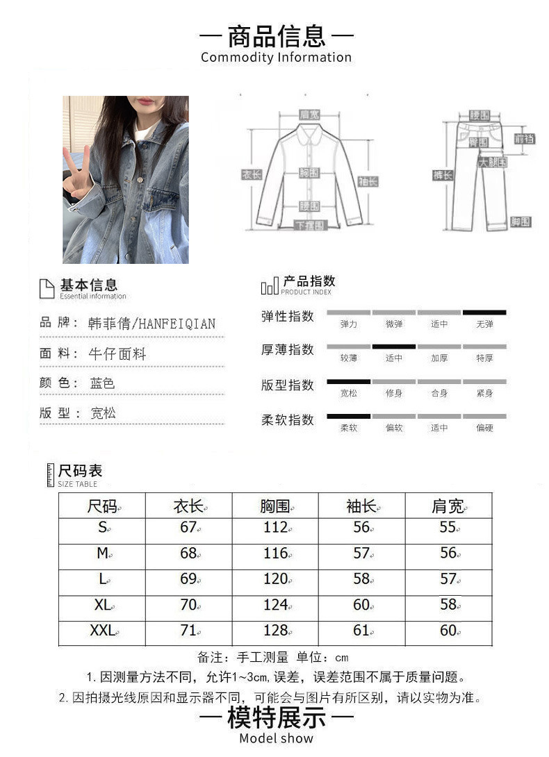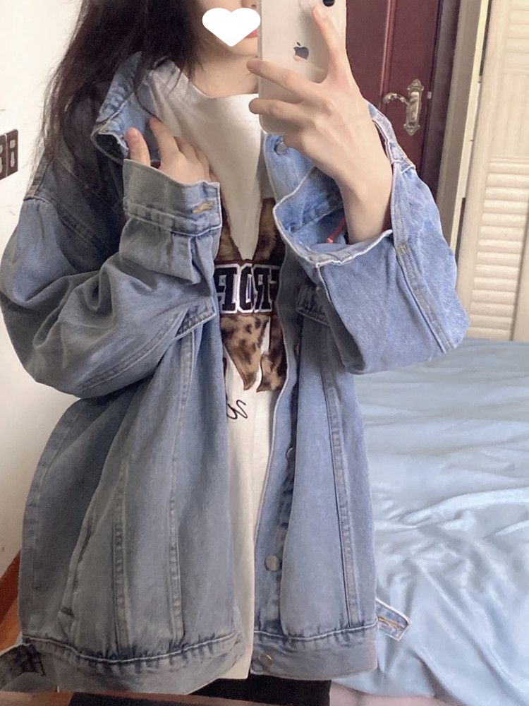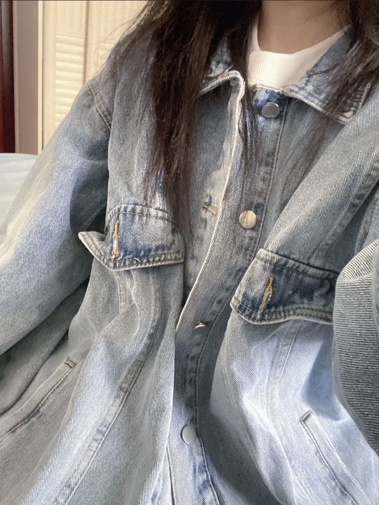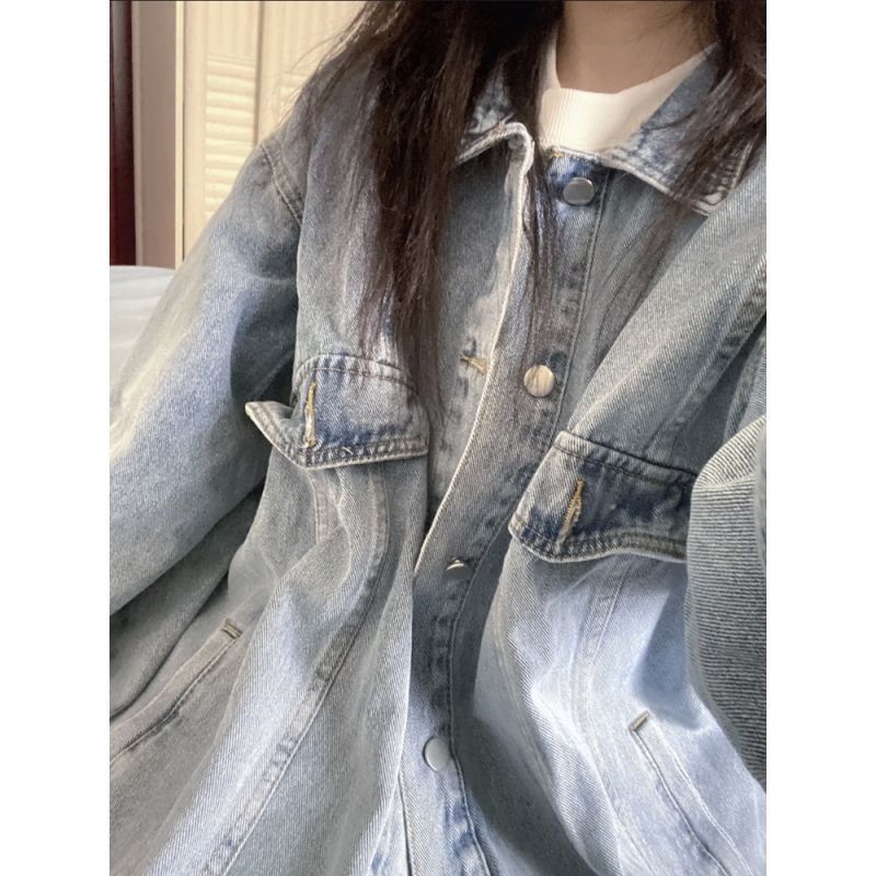 Áo khoác denim đã giặt sạch xuân thu si thiết kế cổ điển kiểu Mỹ áo khoác nữ phiên bản Hàn Quốc dáng rộng bán trực tiếp tại xưởng