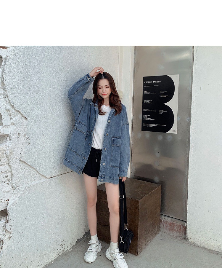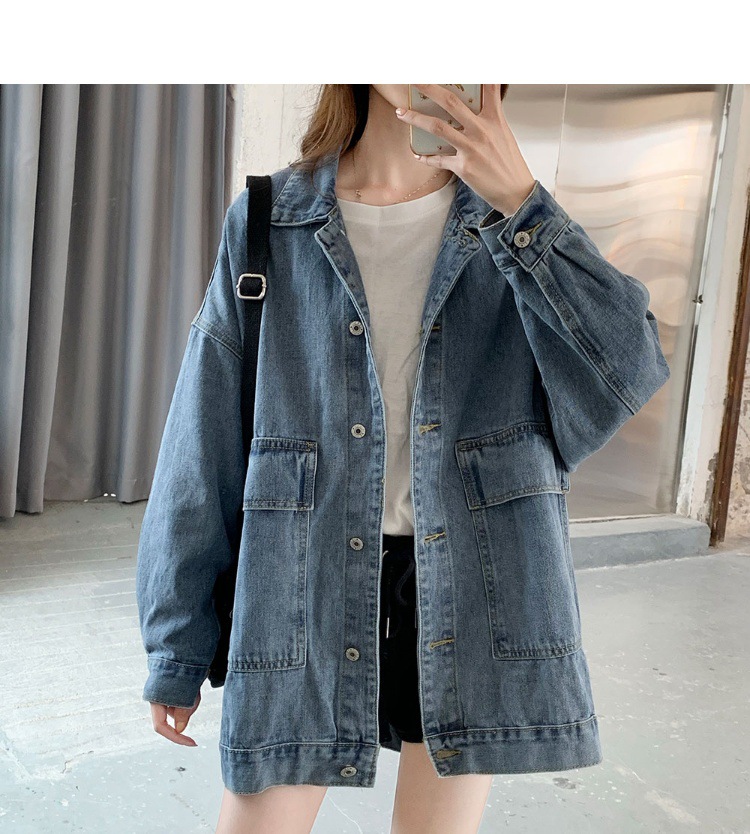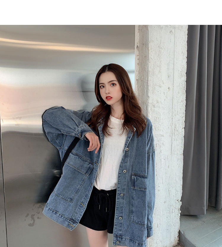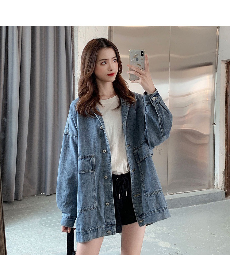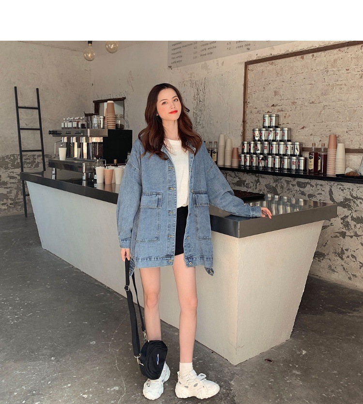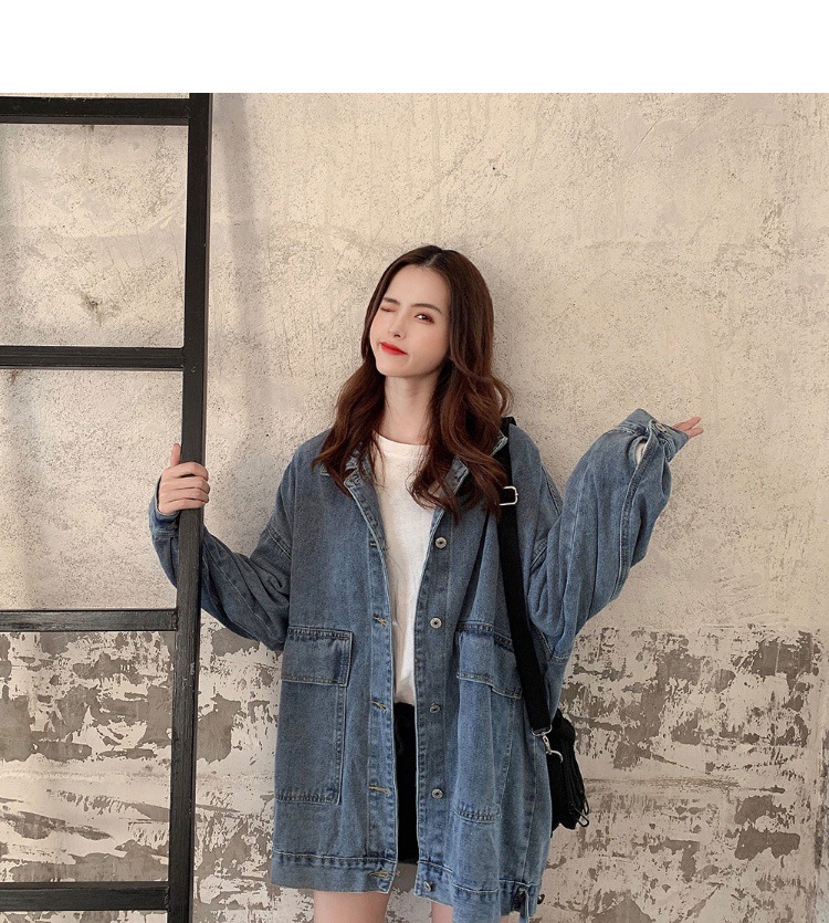 Áo khoác denim dài tay nữ mùa xuân 2023 mới phong cách lười biếng phong cách retro dáng rộng slim giản dị áo khoác hàng đầu
