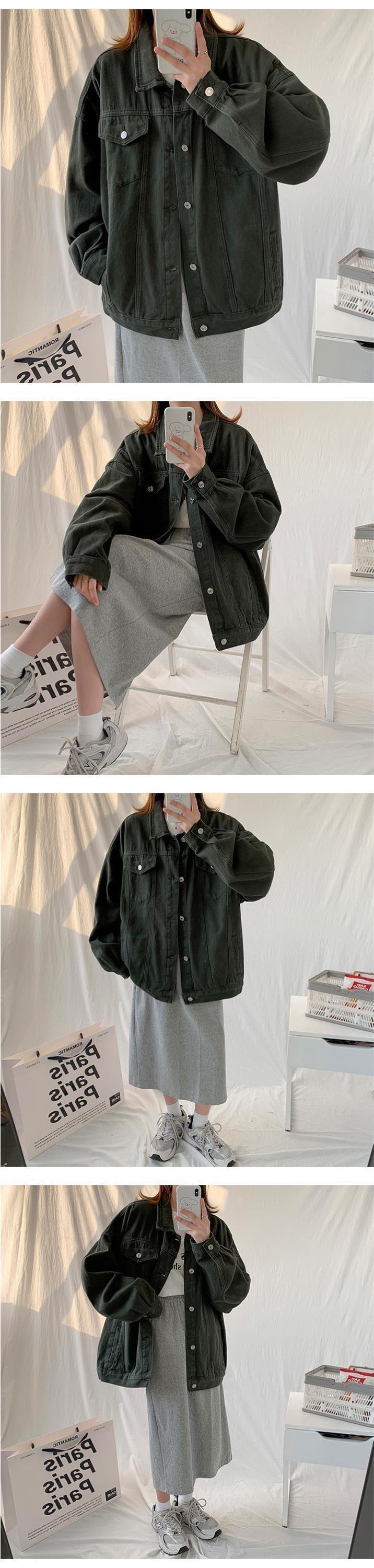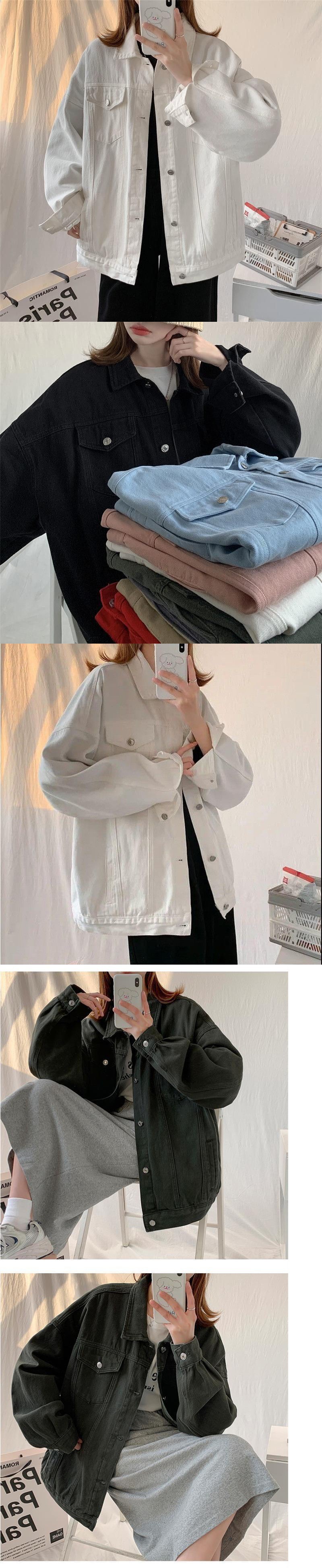 Áo khoác denim dáng rộng màu hồng cho nữ mùa xuân và mùa thu mặc bên ngoài phiên bản Hàn Quốc của chất béo mm kích thước lớn xào dụng cụ đường phố áo choàng