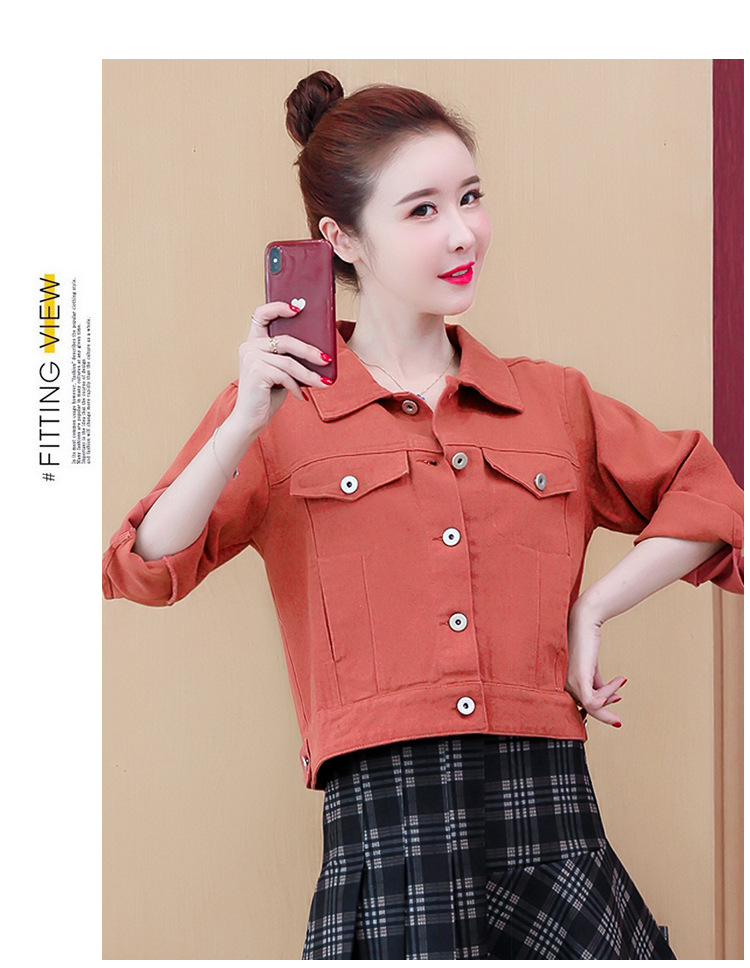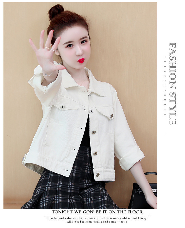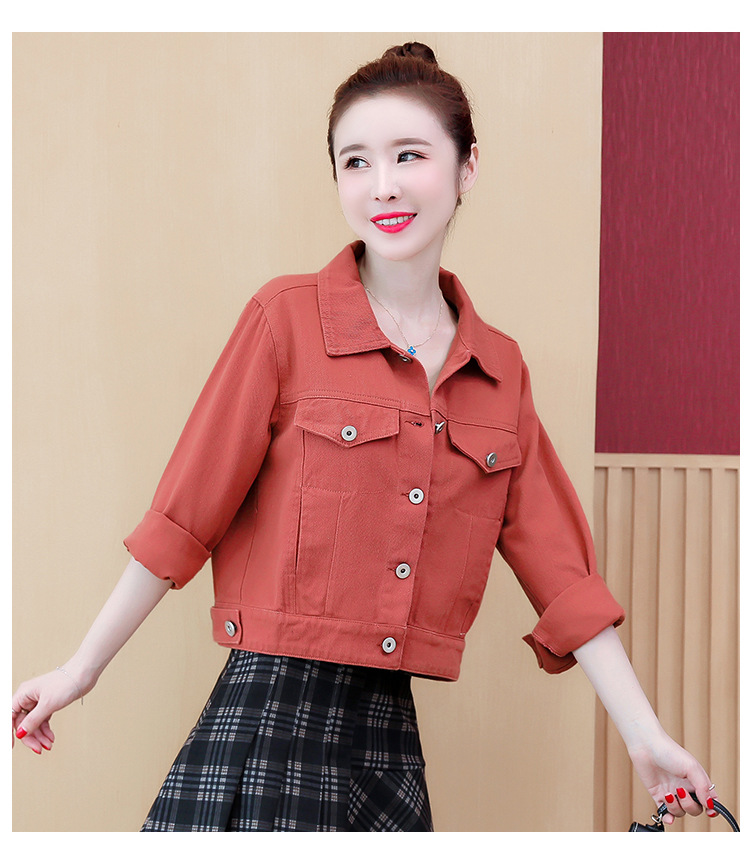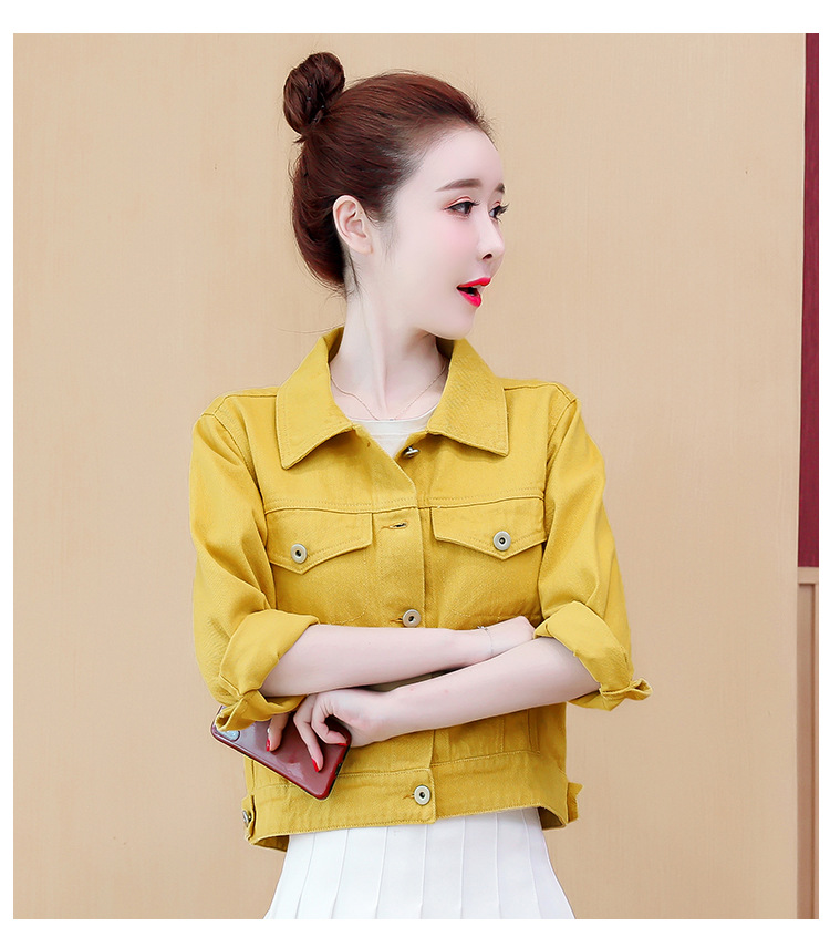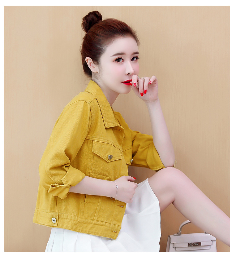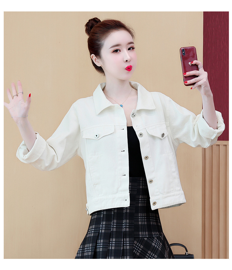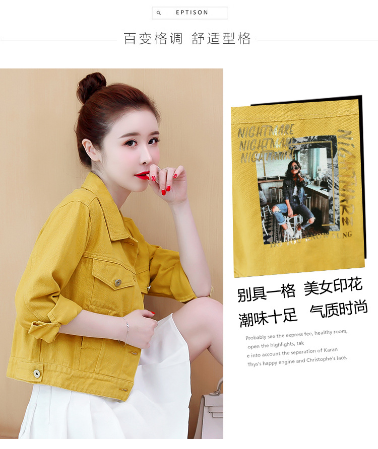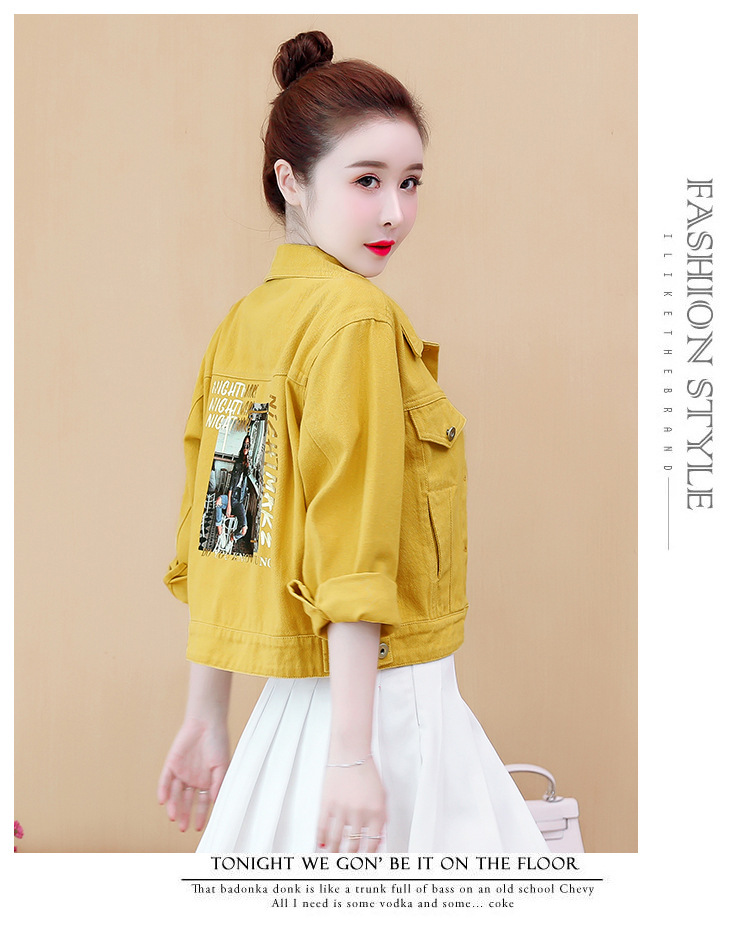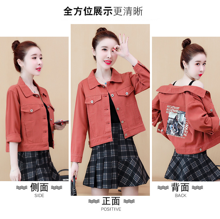 Áo khoác denim dáng rộng phong cách mùa xuân 2023 in đường khâu màu kẹo ngắn nữ nhiều màu sắc phù hợp với áo khoác