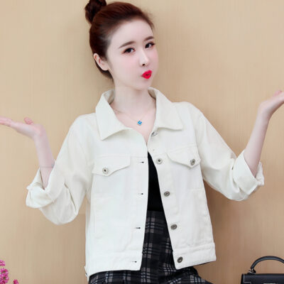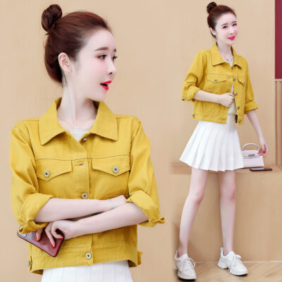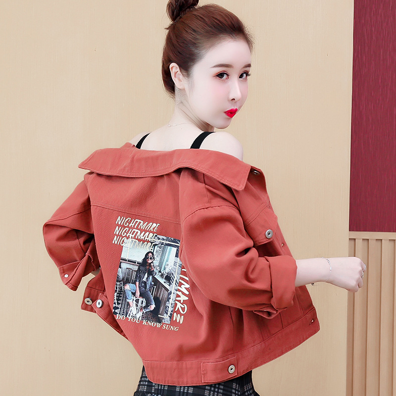 Áo khoác denim dáng rộng phong cách mùa xuân 2023 in đường khâu màu kẹo ngắn nữ nhiều màu sắc phù hợp với áo khoác