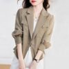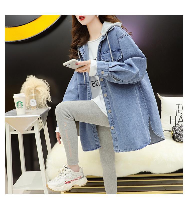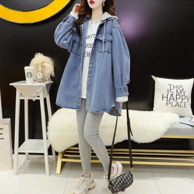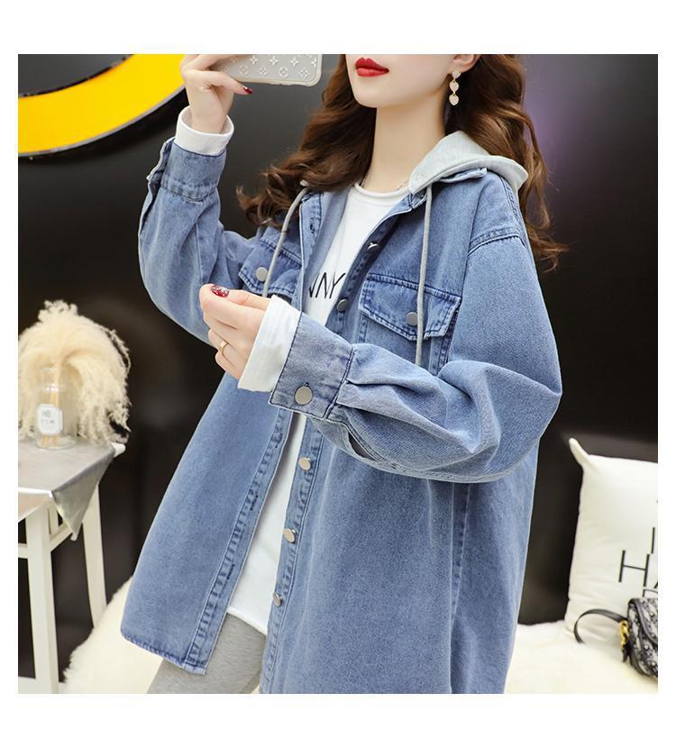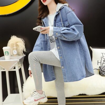 Áo khoác denim gió lười nữ mùa xuân và mùa thu 2023 phiên bản mới của áo khoác gió dáng rộng có mũ trùm đầu kiểu Hàn Quốc