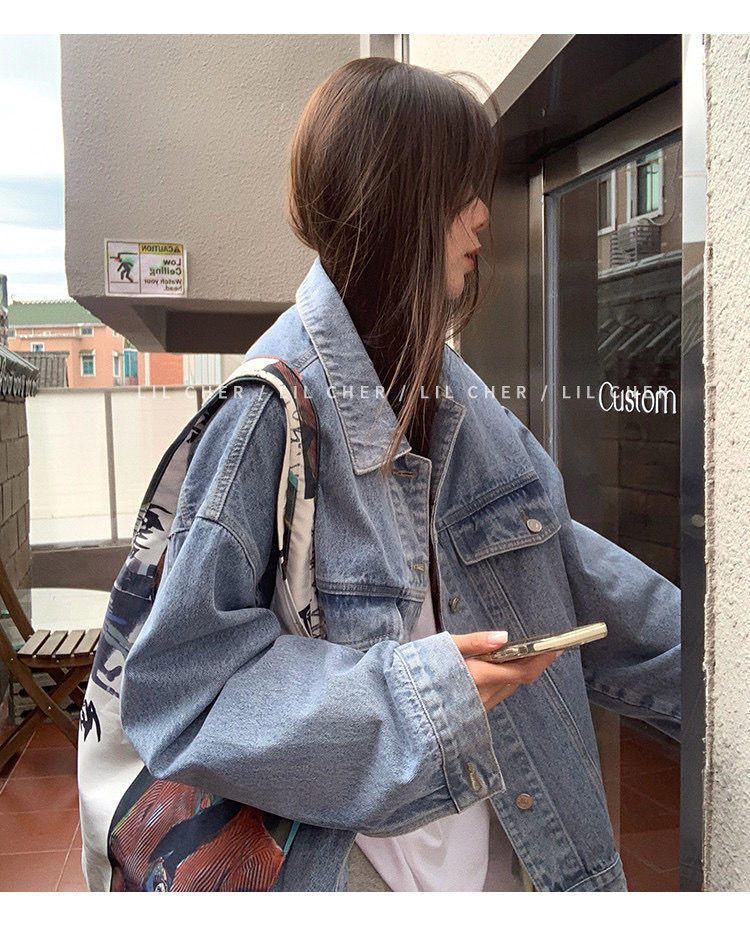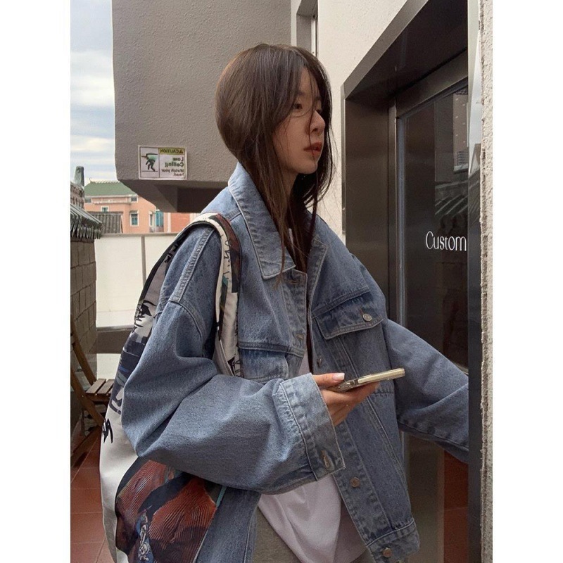 Áo khoác denim kiểu Mỹ phong cách retro nữ mùa xuân và mùa thu 2023 phiên bản Hàn Quốc dáng rộng thường ngày phù hợp với xu hướng áo khoác hàng đầu