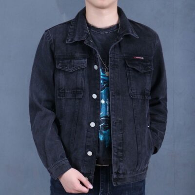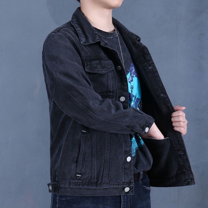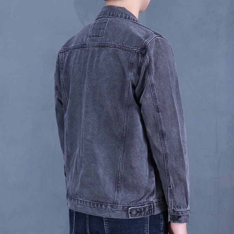 Áo khoác denim màu xám khói áo khoác denim nam cỡ lớn xu hướng rộng mùa xuân và mùa thu áo choàng chống mài mòn mới thay mặt cho tóc