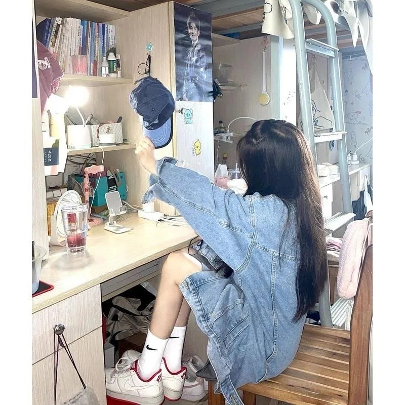Áo khoác denim mùa hè lưới nữ áo khoác denim đỏ mùa xuân và mùa thu học sinh phiên bản Hàn Quốc áo khoác thiết kế rời hàng đầu