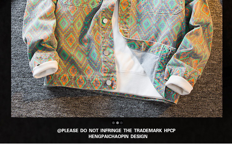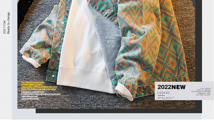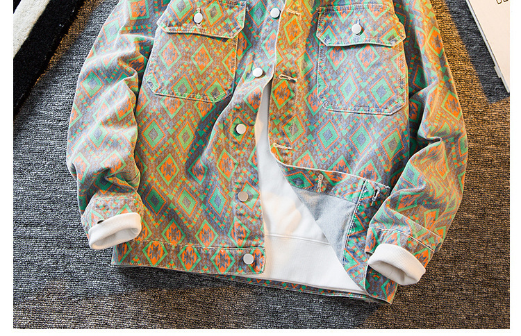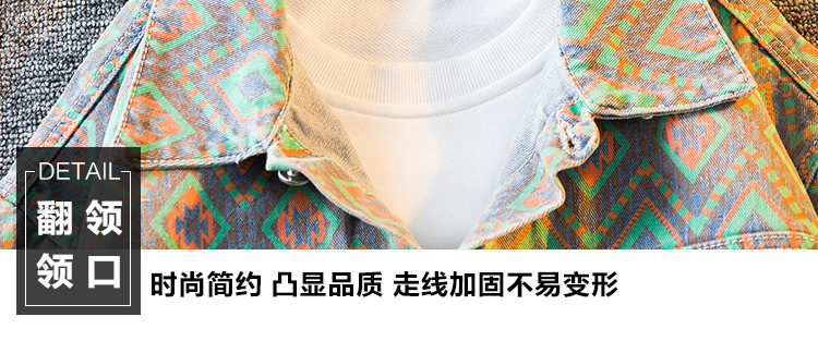 Áo khoác denim nam dày hoa hạt điều mùa xuân và mùa thu thương hiệu hợp thời trang đẹp trai cao cấp in áo khoác nam giản dị