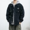纯铜刻字纽扣的门襟是复古工装的典型元素。