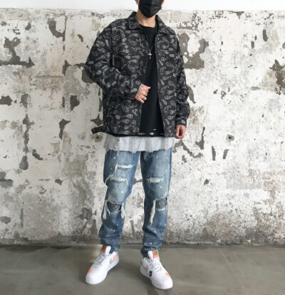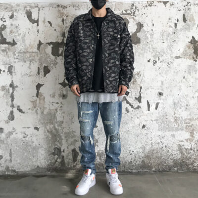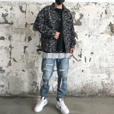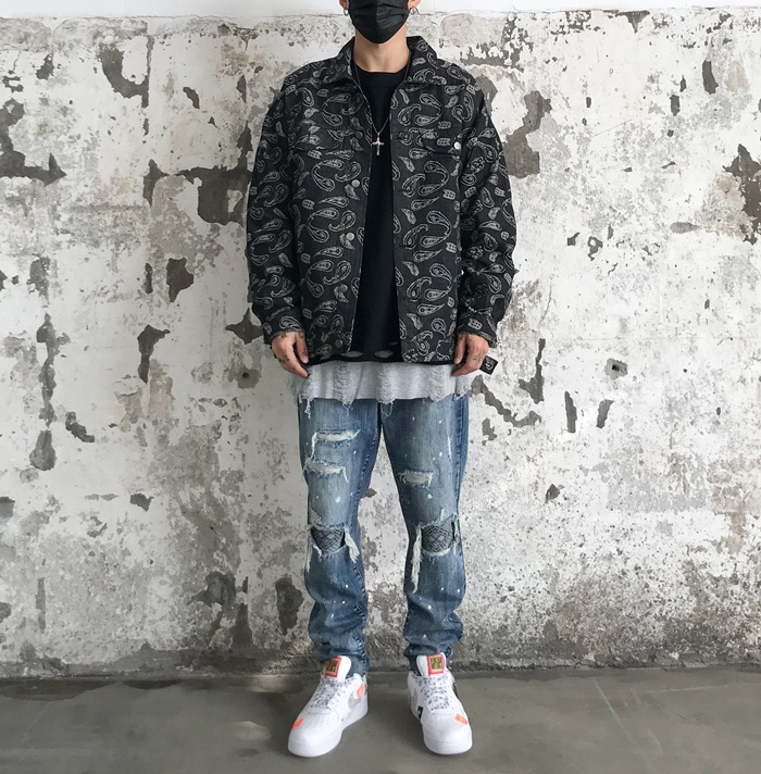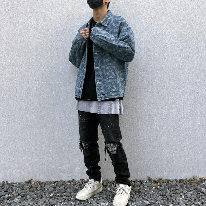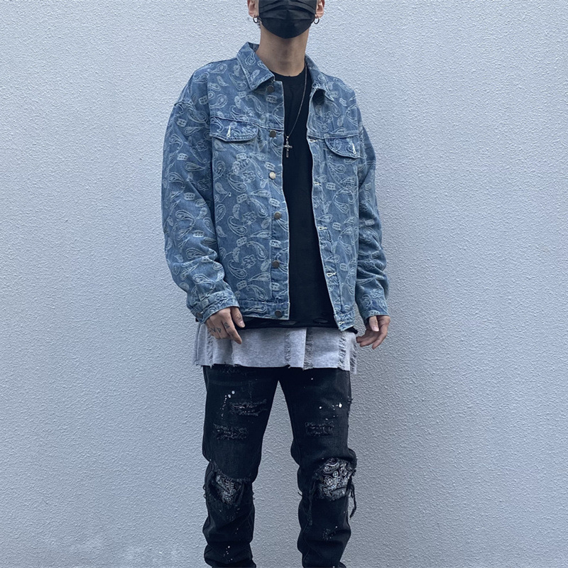 Áo khoác denim nam mùa xuân và mùa thu in hip-hop đường phố cao hạt điều hoa áo khoác hợp thời trang thương hiệu retro đẹp trai quần áo rộng
