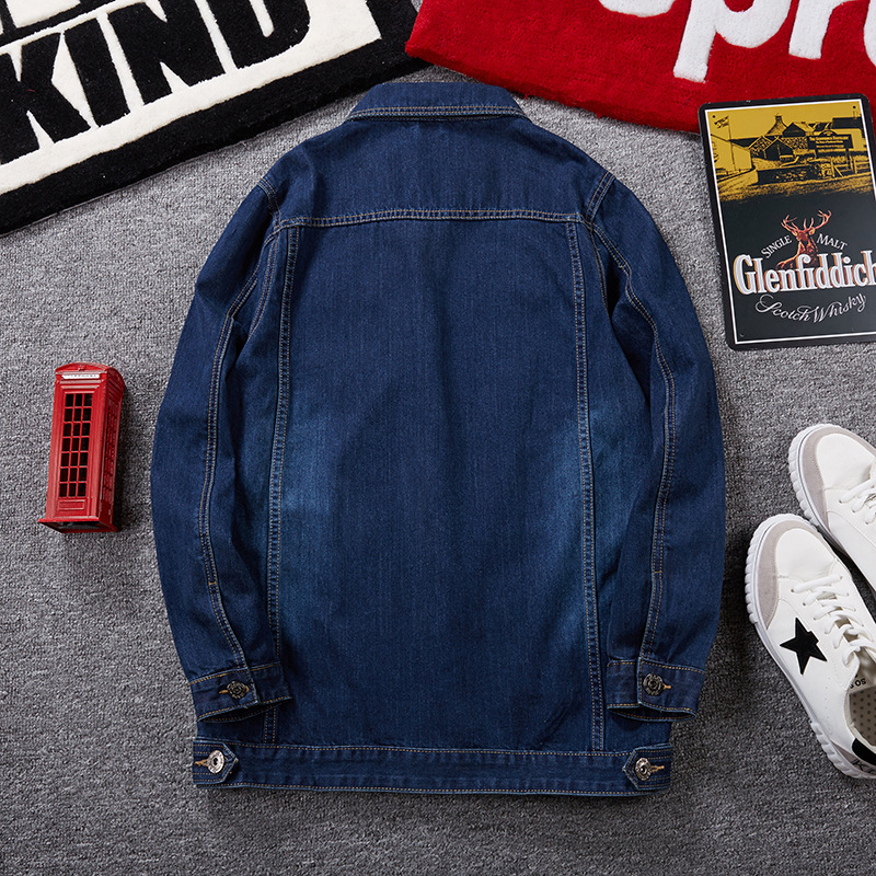 Áo khoác denim nam trẻ trung phong cách Hàn Quốc áo khoác hợp thời trang fat man plus fat plus áo choàng dáng rộng cỡ lớn mùa xuân và mùa thu