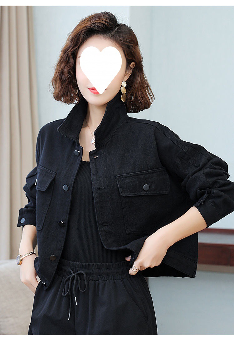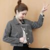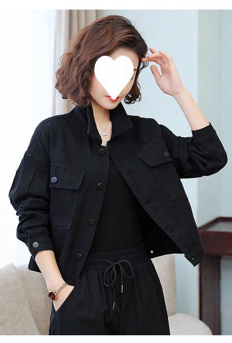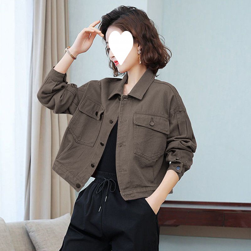 Áo khoác denim ngắn màu đỏ rượu vang nữ nhỏ dáng rộng phong cách hàn quốc áo khoác công cụ xuân thu 2023 mới
