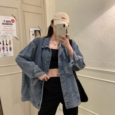 Áo khoác denim nữ 2023 mùa xuân và mùa thu mới phong cách Hàn Quốc dáng rộng sang trọng phù hợp với mọi lứa tuổi áo khoác học sinh áo khoác phong cách retro