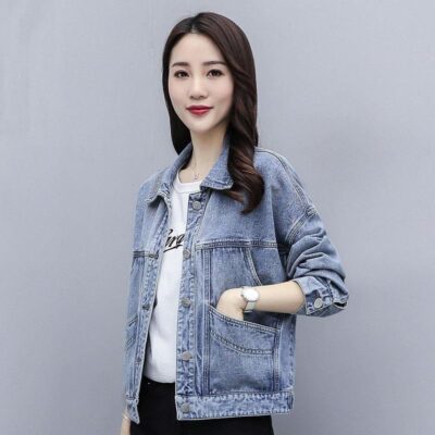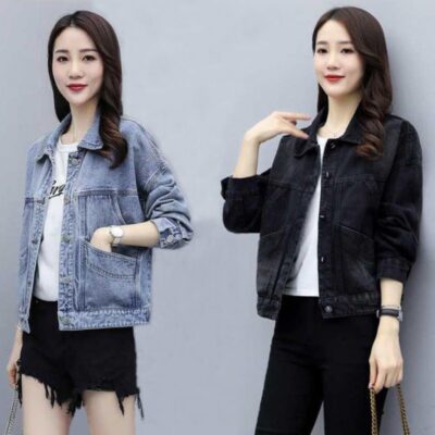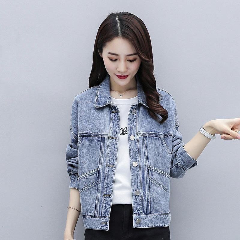 Áo khoác denim nữ 2023 phiên bản Hàn Quốc mới dáng rộng màu đen ngắn miệng lớn phong cách Harajuku áo khoác học sinh phù hợp
