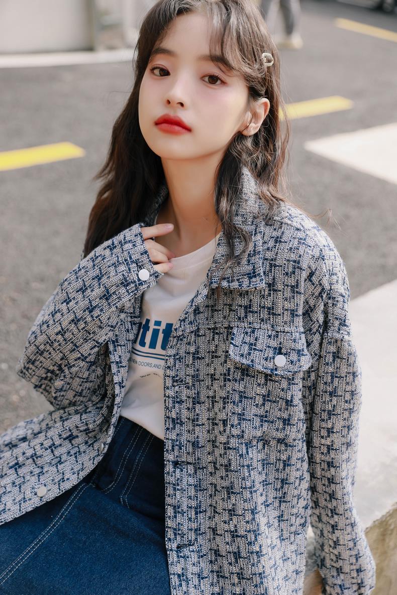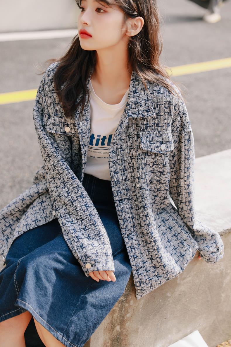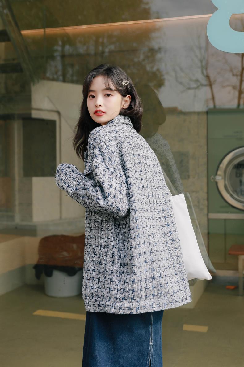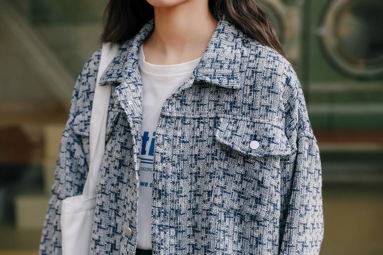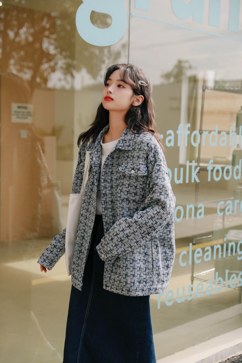 Áo khoác denim nữ mùa xuân 2023 phiên bản Hàn Quốc dệt họa tiết răng hound áo khoác quốc triều nhỏ hương thơm thời trang hàng đầu