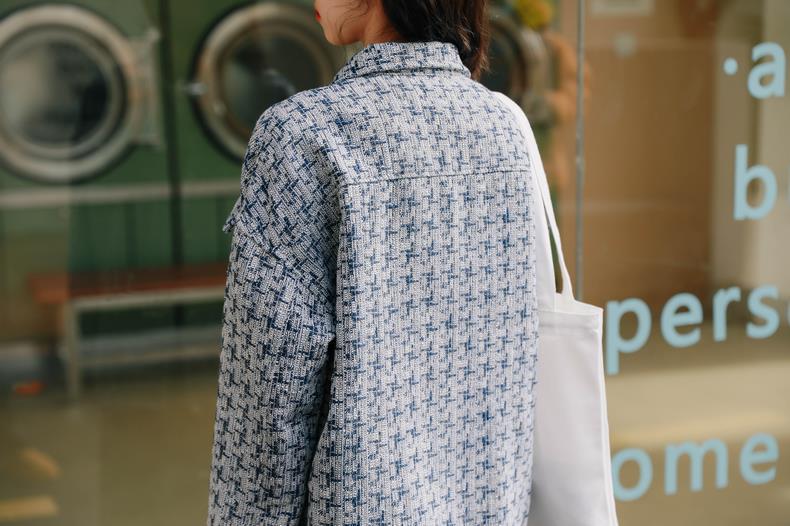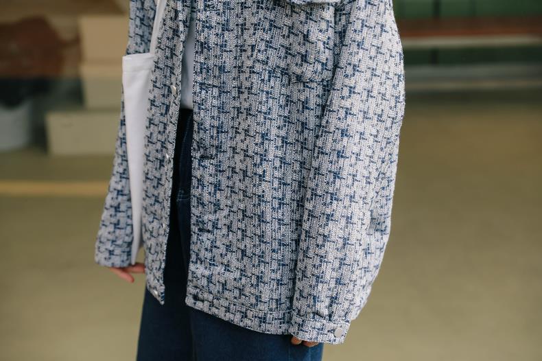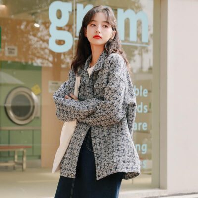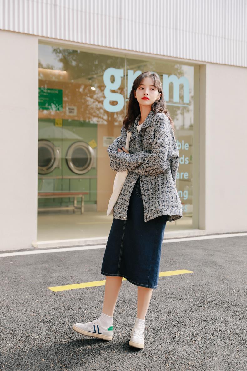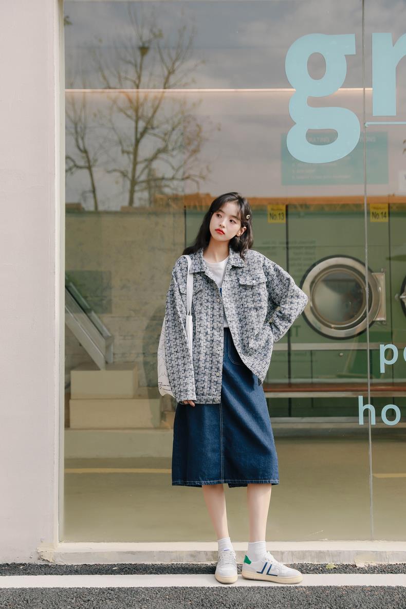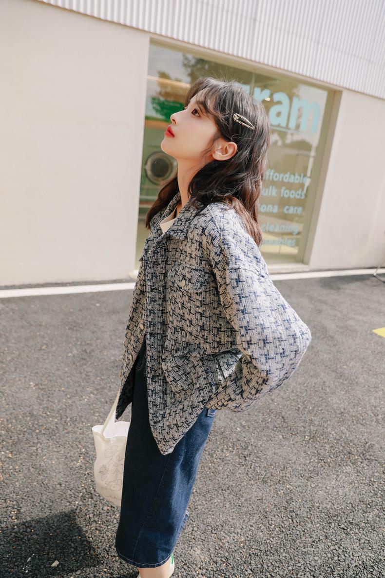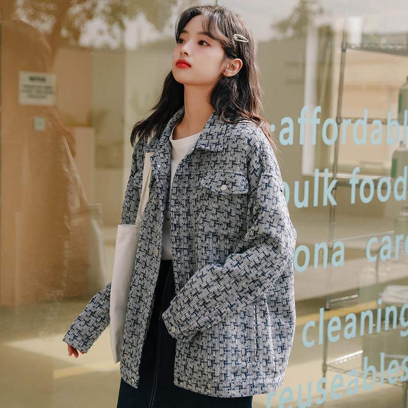 Áo khoác denim nữ mùa xuân 2023 phiên bản Hàn Quốc dệt họa tiết răng hound áo khoác quốc triều nhỏ hương thơm thời trang hàng đầu