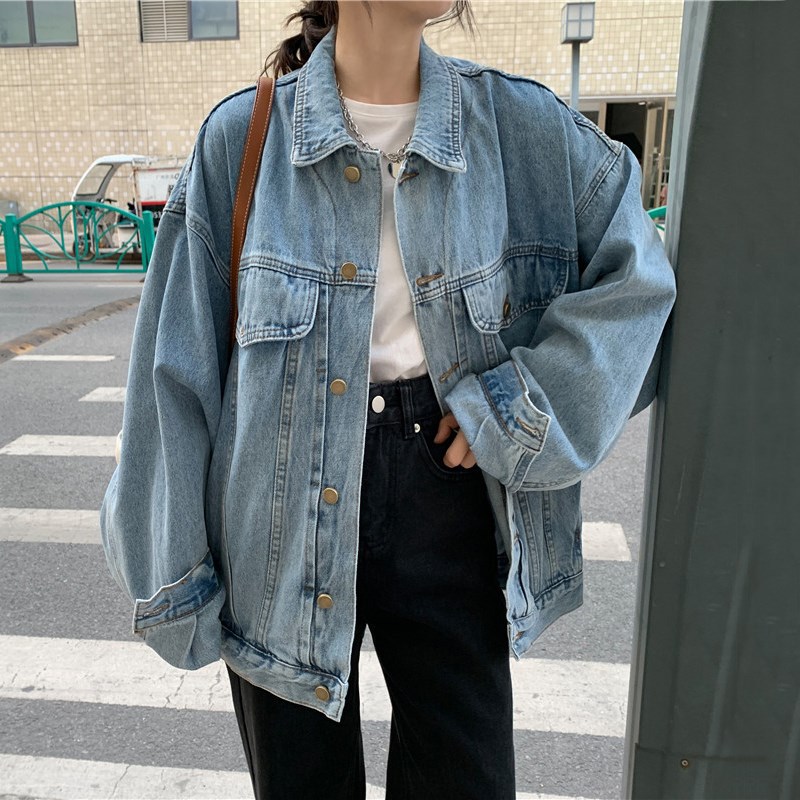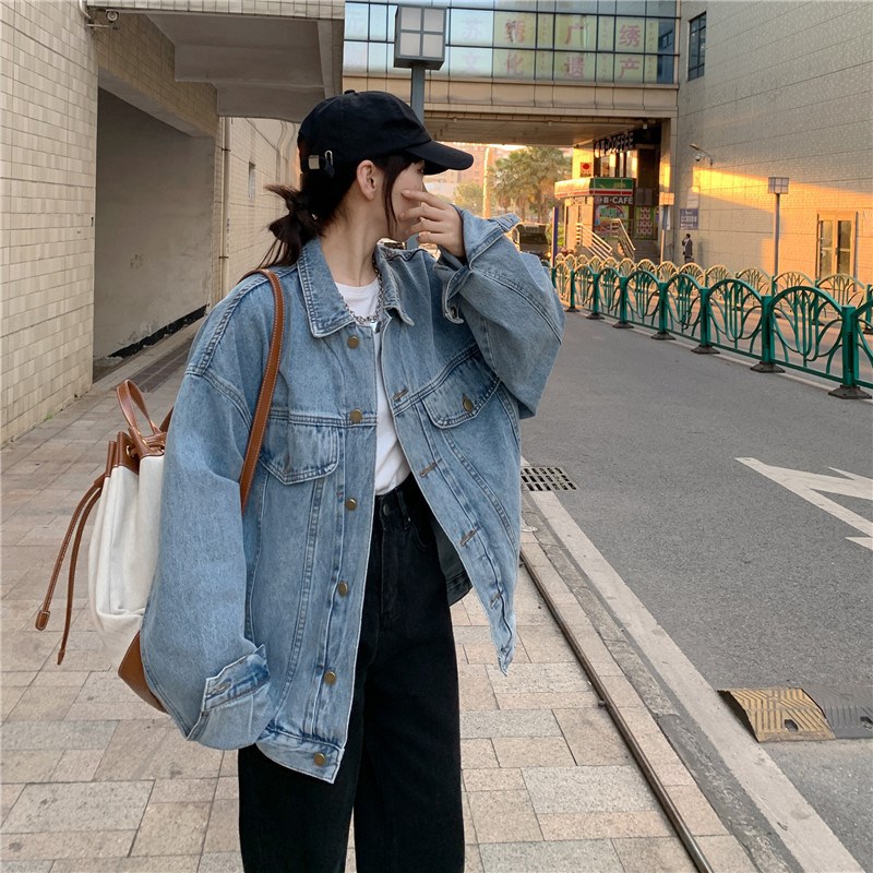 Áo khoác denim nữ mùa xuân và mùa thu phiên bản mới của Hàn Quốc phù hợp với tất cả các loại áo khoác dài tay dáng rộng, mỏng dụng cụ quần áo ins thủy triều