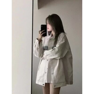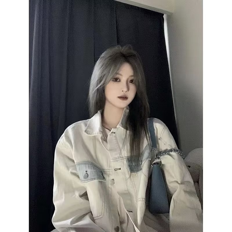 Áo khoác denim nữ thiết kế túi màu mùa xuân 2023 kiểu dáng rộng mới cho tất cả các trận đấu trên triều