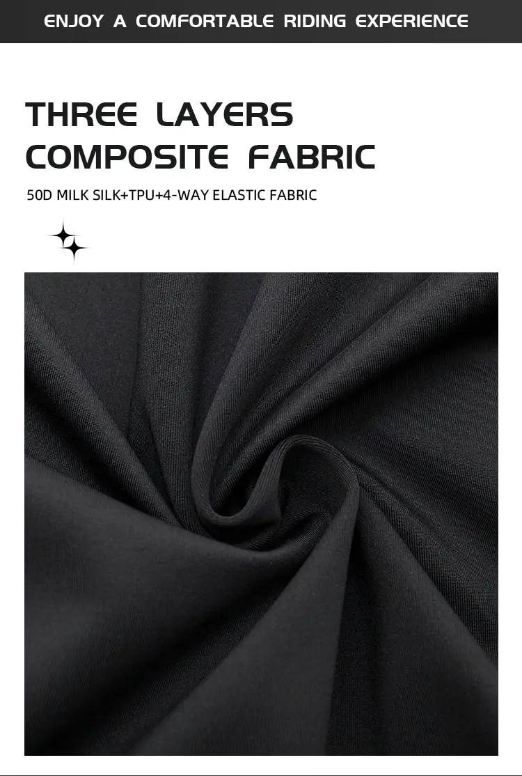 ● This cycling jacket is crafted with a breathable membrane composite 3-layer fabric (50D milk silk + TPU + 4-way stretch fabric), offering exceptional waterproofing with a remarkable 10.00mm waterproof rating, ensuring superb protection in challenging weather conditions._x000D_