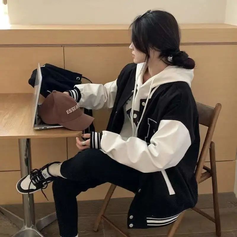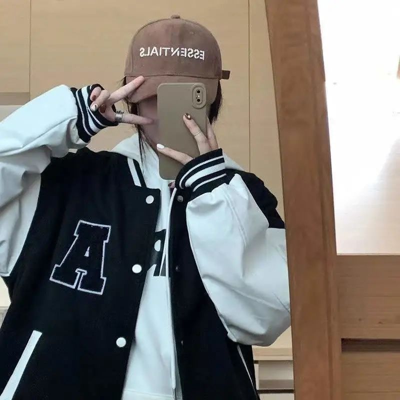 Áo khoác đồng phục bóng chày cặp đôi mùa xuân hè 2022 phiên bản Hàn Quốc mới Áo khoác dày phong cách Hồng Kông bóng chày đồng phục bóng chày nữ