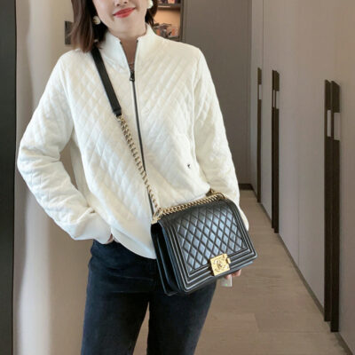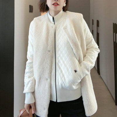 Áo khoác đồng phục bóng chày hình thoi màu trắng đơn giản hợp thời trang thu đông khí chất cao cấp giảm tuổi tác áo khoác dây kéo phong cách nước ngoài