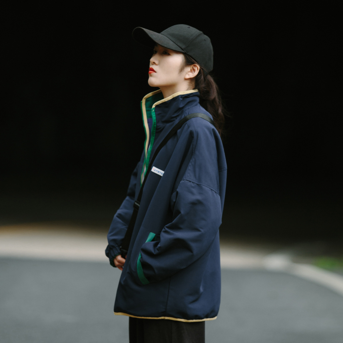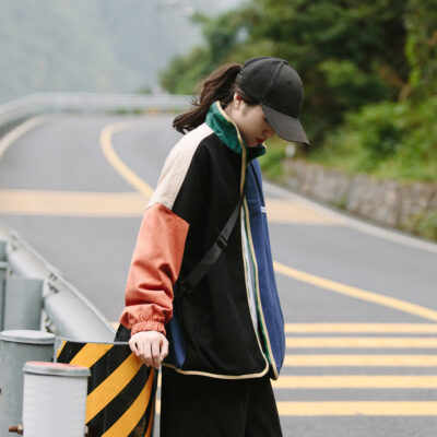 Áo khoác dụng cụ màu tương phản nối muối cho phụ nữ dáng rộng oversize hai mặt mặc đồng phục bóng chày mùa xuân và mùa thu chiên áo khoác đường phố hợp thời trang